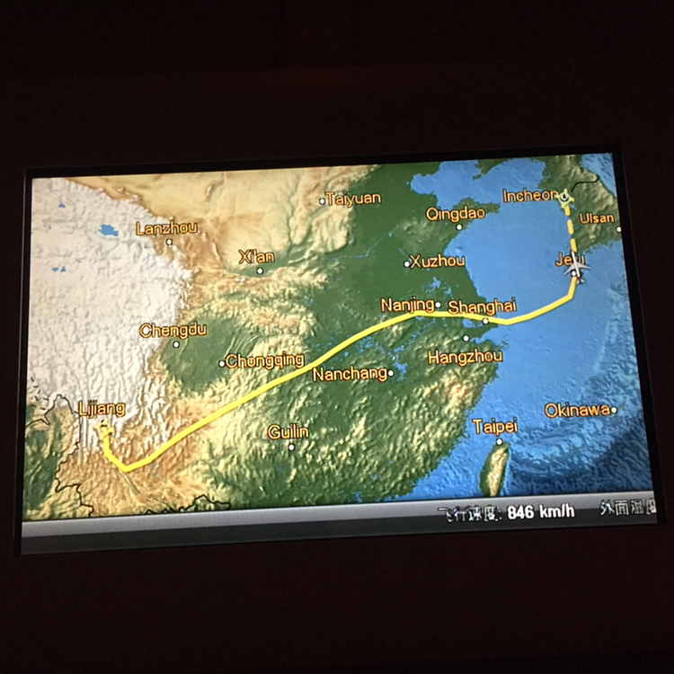 비행기 출발은 예정 시간보다 거의 한 시간 늦게 이루어졌다. 다행히 인천으로 돌아가는 비행 시간은 여강에 올 때보다 40분 이상 단축됐다. 왜 그런지 이해할 순 없었다. 3박 4일의 여행이 끝나고 이제 한국으로 돌아갈 일만 남았다. 비행기는 힘차게 이륙했다. 활주로 북쪽에서 남쪽으로 날았다. 서서히 왼쪽으로 기수를 틀어서 중국 내륙을 향해 동쪽으로 날기 시작했다.