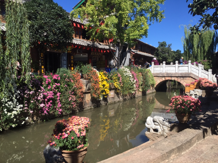 흑룡담공원에서 여강고성쪽으로 걸어서 이동했다. 그 두 곳이 서로 연결돼 있는 줄은 몰랐다. 내를 따라서 걸어가다 보니 여강고성으로 넘어가게 됐다.