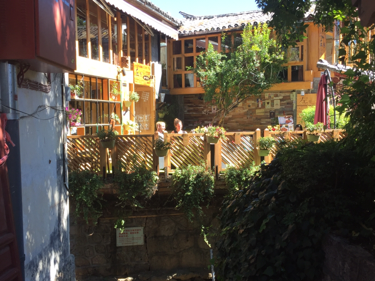 목부는 그리 멀진 않았다. 그런데 뜻밖의 일이 기다리고 있었다. 입장료가 자그마치 60원이었다. 우리 수중엔 겨우 40원뿐이었는데... 80원이 모자랐다. 60원이면 한국돈으로 만 원이 넘는데 무슨 입장료가 이리도 비싸단 말인가. 경비가 떡 버티고 있으니 몰래 들어갈 엄두도 못 내고 할 수 없이 들어가기를 포기하고 외곽 벽 따라 돌기로 했다. 목부를 담장 따라 한 바퀴 돌았다. 여강고성 입구쪽의 상점가와는 딴판으로 목부 주변 골목길은 조용했다.