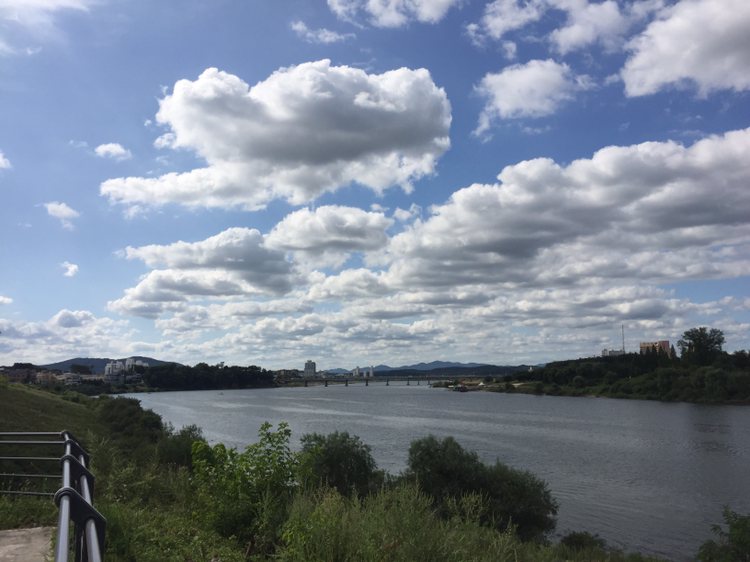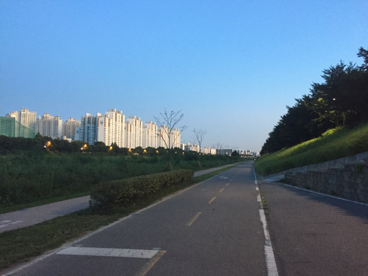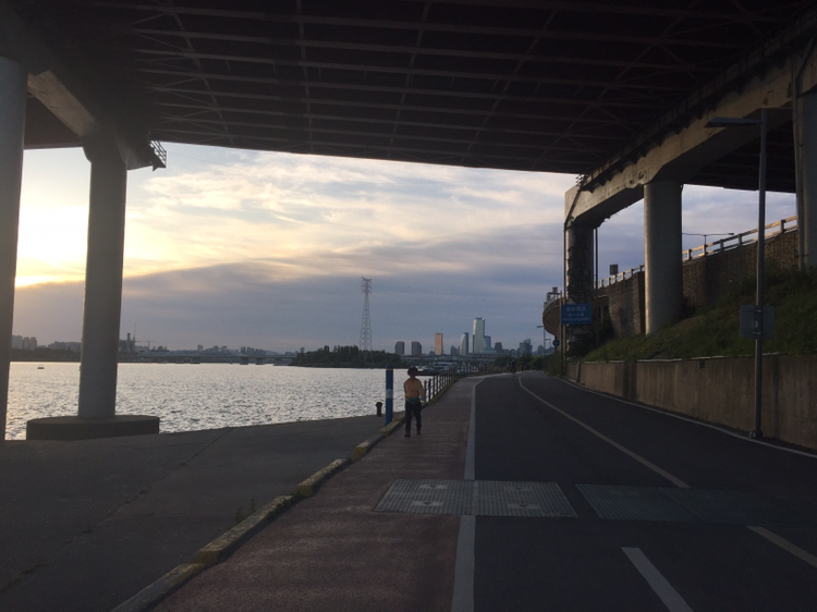 그냥 강 옆으로 난 도로의 인도에도 사람이 거의 없어서 인도로 달렸다.