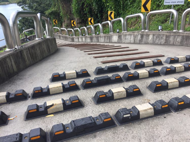 하도 가팔라 자전거를 타고 내려가지 못하도록 요철을 박아 놓았다.
