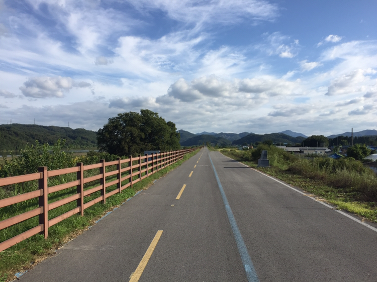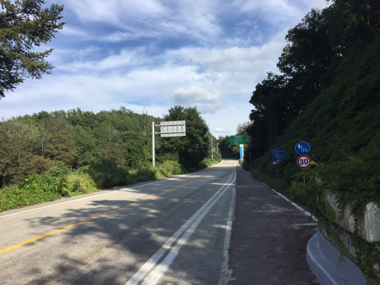 다시 자전거전용도로는 없어지고 일반 도로와 겸용인 곳을 지났다.
