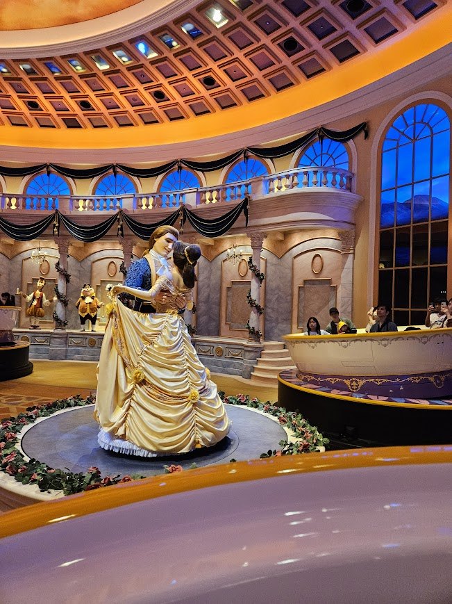 아이는 꼬마 유령모양의 머리핀을, 나는 크리스마스 악몽의 여주인공 샐리를 장착하고 파크에 들어섰다. 옛날엔 입구에서 종이로 된 표를 사고 들어갔지만 요즘은 미리 예매도 해둬야 하고 유튜브라도 찾아보며 나름 공부도 해야 한다. 그래도 하루에 다 돌아보기란 쉽지 않다. 도쿄 디즈니랜드는 20년도 훨씬 전의 기억이지만, 그 후에 올란도에 가봤으니까 어트랙션은 대부분 낯설지 않았다. 제일 인기 있는 미녀와 야수부터 찾기로 했다. 찻잔을 타고 너울너울 흘러가며 보는 스토리에 흠뻑 빠졌다.