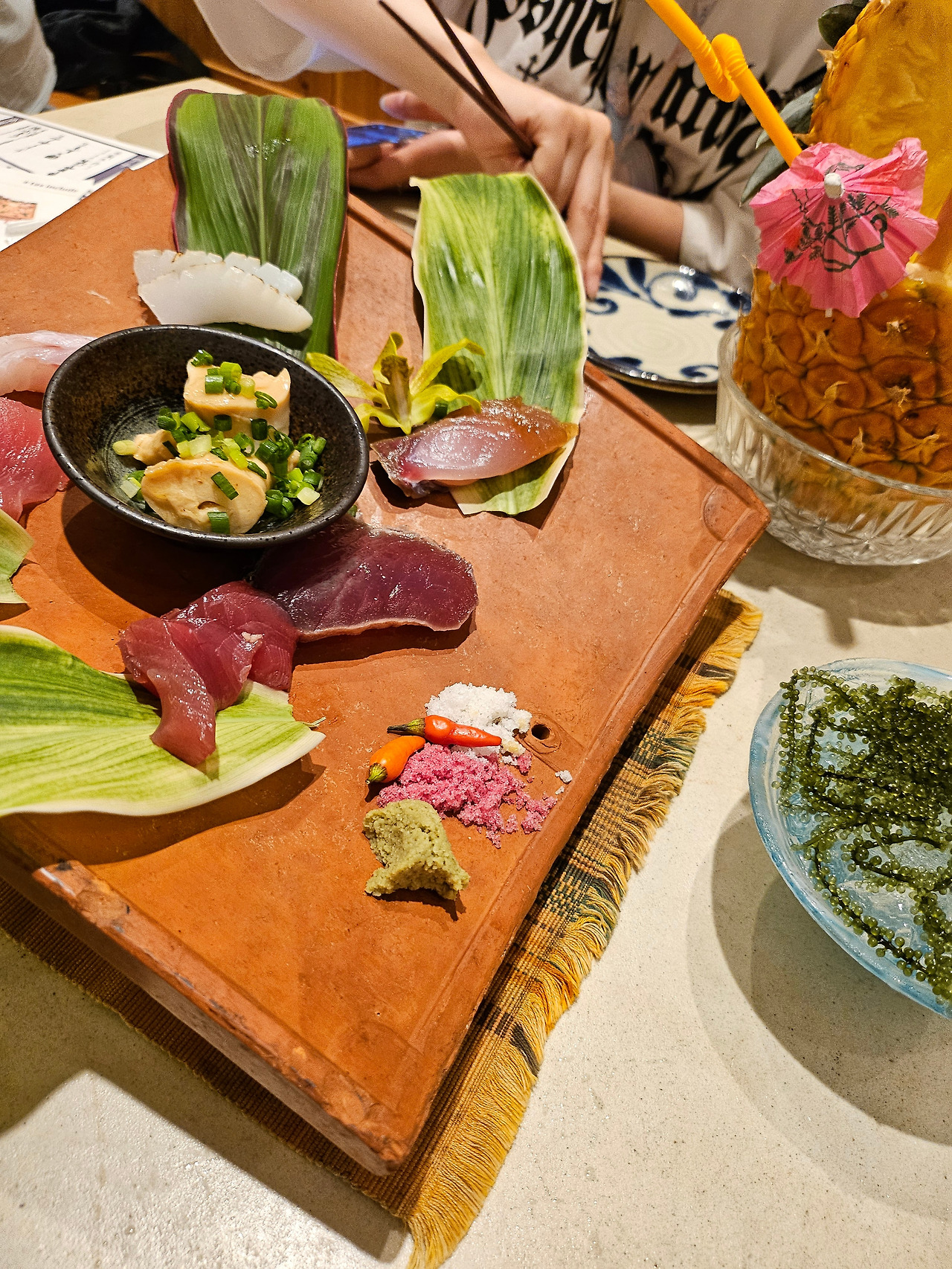 대도시 일본의 식당은 메뉴의 음식을 모형으로 만들어 놓은 곳도 많고 영어메뉴에 번호까지 달아 주문하기가 어렵지 않다. 더구나 일본의 음식이라곤 스시밖에 모르는 서양인들하고 달리 우리는 돈가스, 우동, 소바에 각종 덮밥까지 많은 종목을 현지와 거의 비슷한 퀄리티로 이미 접할 수 있다. 하지만 과연 한국인에게 일본음식은 마냥 쉽고 친숙할까? 관광객보다 지역 주민이 많은 식당에서 사진 한 장 없이 일본어로만 되어 있는 메뉴에서 금방 좋아하는 걸 골라낼 수 있을까? 이시가키에서의 하룻밤, 바닷가에 왔으니 싱싱한 생선을 먹을 수 있지 않을까 하는 기대로 일식당에 들어갔는데 뭘 주문해야 할지 알 수가 없다. 영어 메뉴도 종이에 간단하게 적혀 있었지만 별 도움은 되지 않았다. 회를 주문하자 예쁜 기와를 접시 삼아 여러 종류의 생선을 두 점씩 가져왔다. 이름표가 따라왔는데 마구로 외엔 모르겠어서 파파고로 스캔해 봤다. 손글씨여서인지 한국에서는 잘 안 먹는 종류이기 때문인지 제대로 번역하는 게 하나도 없다. 근처에서 잡힌 운 나쁜 물고기겠거니 하고 먹는 수밖에.