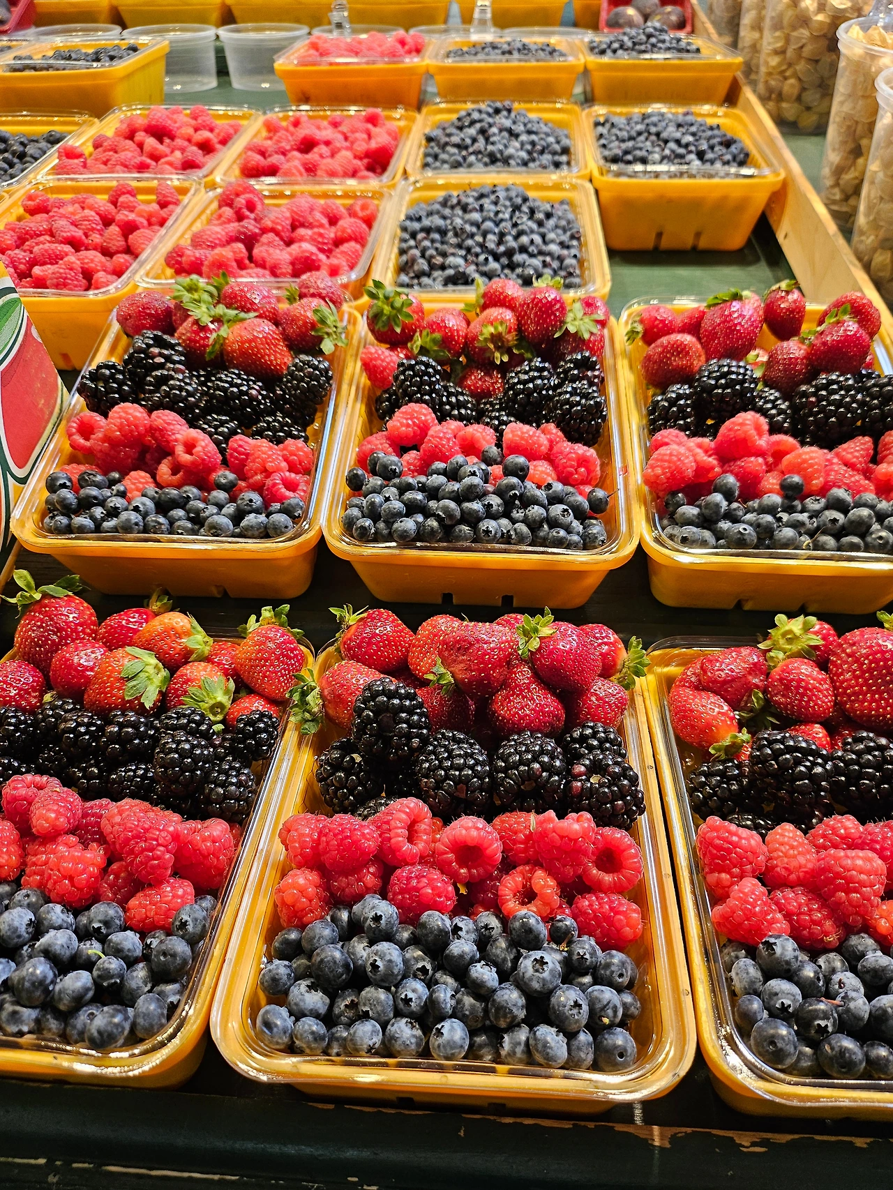 근처의 길 이름이기도 한 앳워터는 운하 바로 옆에 있는 위치 때문인 줄 알았는데 의외로 에드윈 앳워터 Edwin Atwater라는 사람의 이름이었다. 1830년에 미국 버몬트 주에서 당시 로어 캐나다인 이곳으로 이민을 와서 페인트공으로 일을 시작해 사업가로 자수성가한 인물이다. (이 사람이 세운 은행이 지금의 로렌시안 뱅크가 되었다고 한다) 아르데코 양식의 오래된 2층짜리 건물 하나가 길게 놓여 있고 그 앞에 야채와 과일, 꽃가게가 즐비한 모양새가 계절의 변화를 보기에 좋은 곳이다. 차를 주차하고 퀘벡의 빵집 체인인 프리미에르 무아송 앞을 지나 들어가니 가지런히 진열해 놓은 과일이 보였다. 마늘도 상추도, 심지어 비죽하니 자란 생강까지 이곳에선 예쁜 전시품이 된다. 그래서 일반 수퍼보다 조금 비싸도 즐거운 마음으로 돌아다니다 보면 어느새 장바구니가 묵직했다.