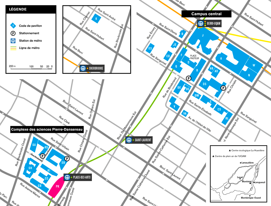 UQAM의 캠퍼스는 이곳만이 아니다. 몬트리올 섬 바깥의 라발이나 롱궤이 등에도 제한적이지만 공부할 수 있는 공간이 있고, 몬트리올 시내에도 베리위캄에서 지하철 두 정거 거리인 플라스데자르 (Place des arts) 역과 연결되는 프레지던트케네디관을 중심으로 작은 학교단지가 형성돼 있는데, 캐나다에서 처음 환경분야의 박사학위 과정을 개설한 학교답게, 퀘벡의 생태학자 피에르 당스로 (Pierre Dansereau)의 이름을 붙였다.
