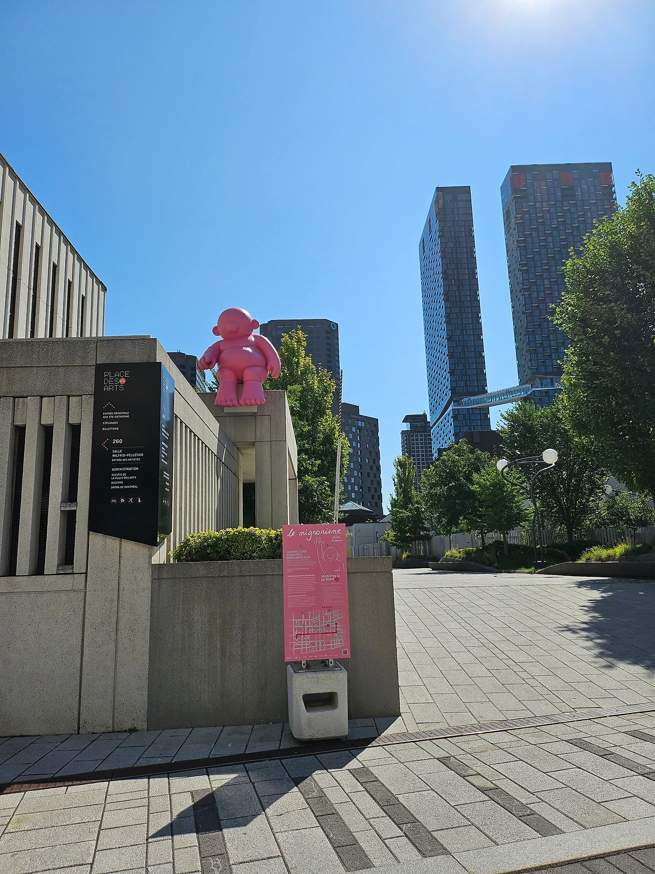 2024년 9월 29일, 바로 오늘까지 전시 중인 이 작품은 프랑스의 필립 카트린 (Philippe Katerine)의 미뇨니즘 (Mignonisme) 전의 일부로, 몬트리올과 퀘벡시티 곳곳에 크고 작은 무슈 로즈가 설치되었다. (불어로 색깔로서의 '로즈'는 장미가 아닌 핑크색을 의미한다) 우리에겐 '반나체 블루맨'으로 알려져 버린 파리 올림픽 개막식의 그분이다. 미뇽(mignon)이 잘생겼다, 귀엽다는 뜻이니까 미뇨니즘이란 단어는 말하자면 '귀요미즘' 쯤으로 만들 수 있겠다.
