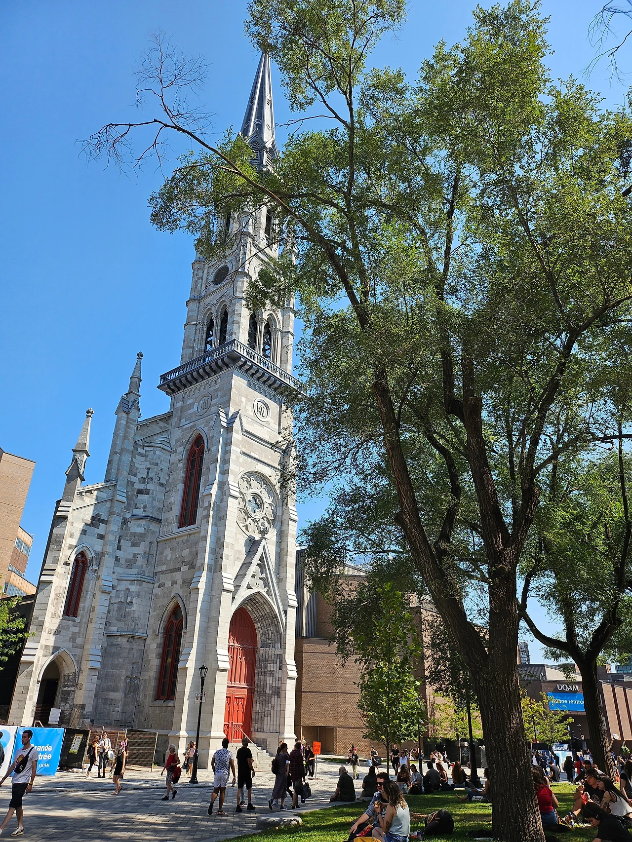 그의 표정 때문이었다. 걷다가 꽃을 들어 보는 얼굴에 미소가 어렸다. 그는 UQAM 대학의 상징과도 같은 생 자크 교회 종탑 앞을 지나 사람들 속으로 사라졌다.