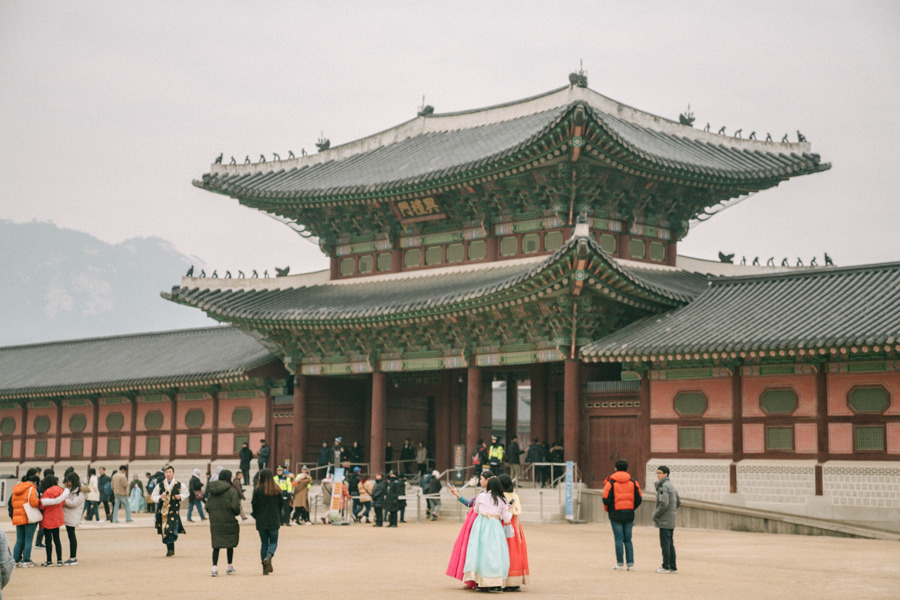 빛줄기 하나 새어나올 틈 없는 빼곡한 구름의 흐린하늘 아래 이 날의 산책은 이곳에서 시작되었다. 사진찍기엔 항상 아쉬운 흐린날이지만, 형형색색의 고운 한복을 차려입은 연인들, 친구들은 상관없는듯 각자 그 날의 추억들을 남기고 있었다.