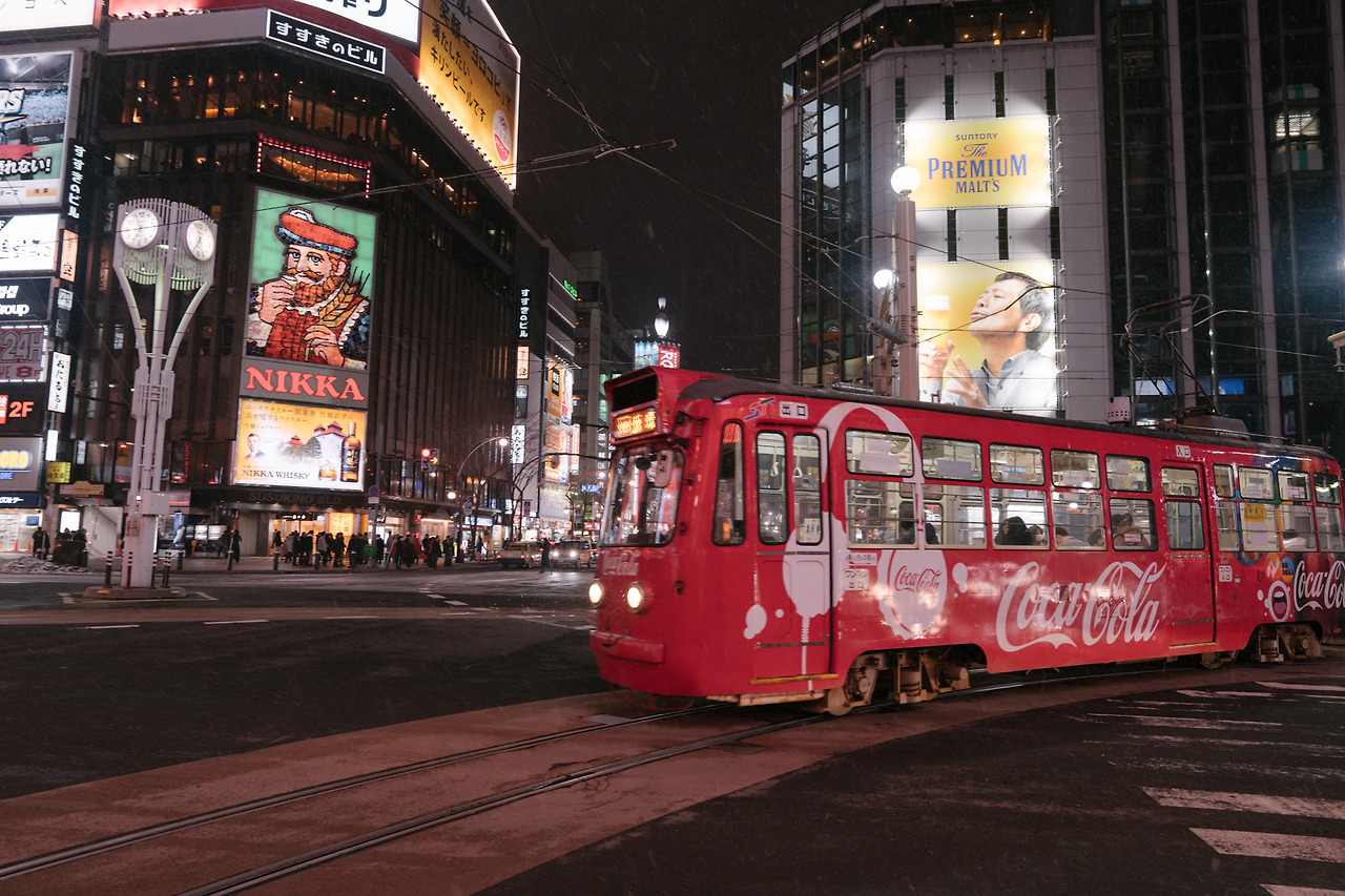 스스키노 사거리에서는 저 트럼프 킹을 연상시키는 NIKKA 전광판을 중심으로 삿포로의 번화가들이 즐비해 있다. 평일이라 퇴근하는 직장인들이 많이 보였다. 3월의 홋카이도는 나에겐 아직 추웠다. 밥도 굶었으니 눈바람은 매섭기만 하다.