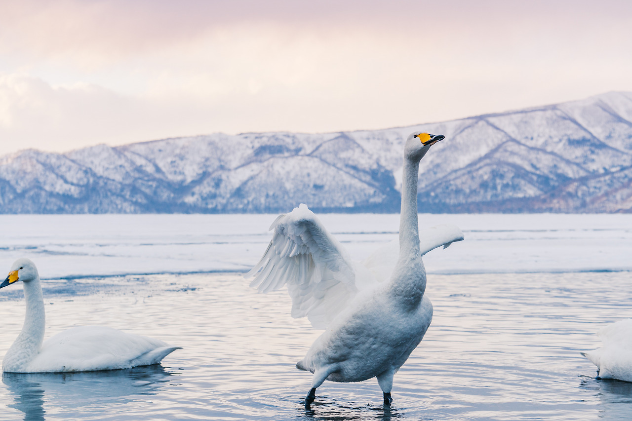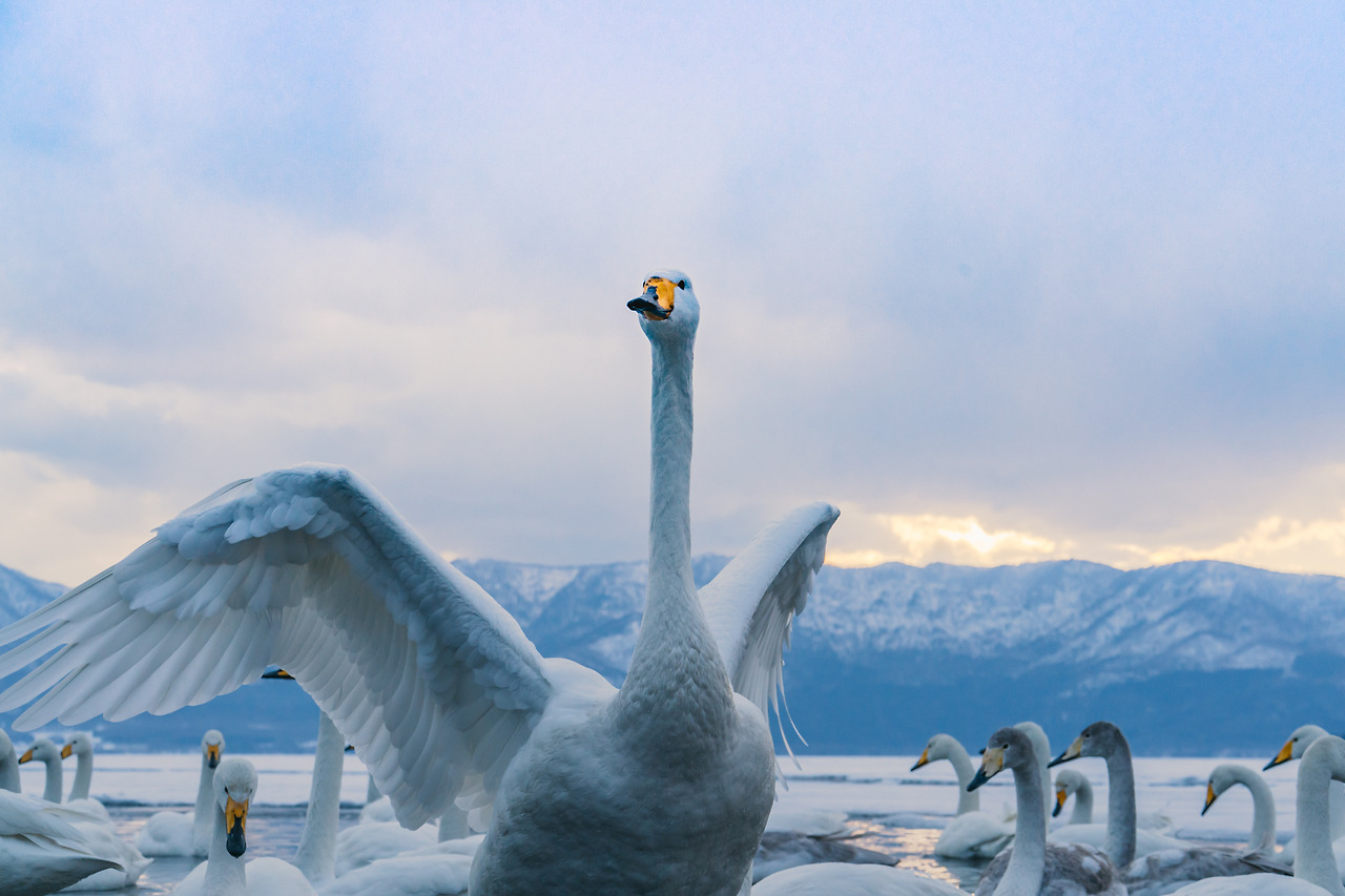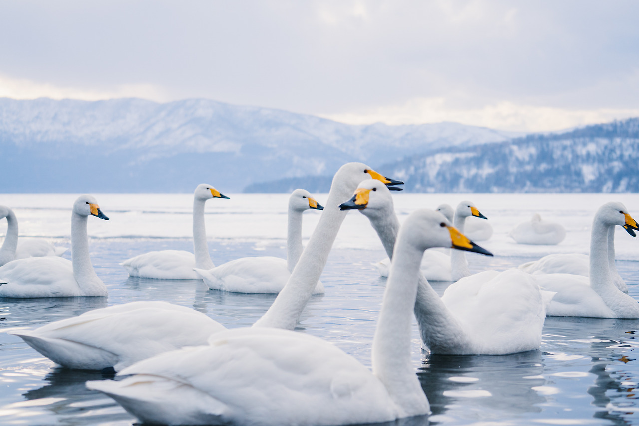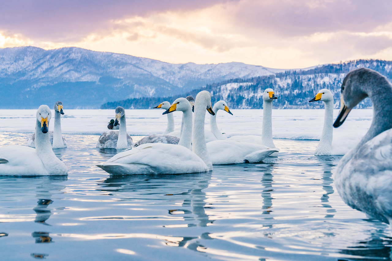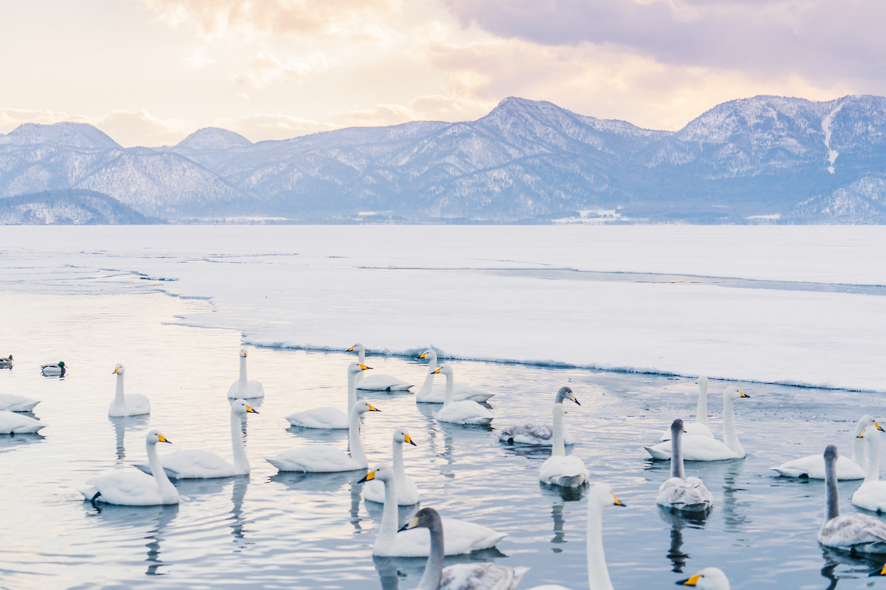 홋카이도의 겨울은 물론 춥지만 셔터를 누르기 위해 움직여서 그랬을까 노을이 지는 밤이와도 크게 춥진 않았다. 아무래도 온천수 때문인 것 같았다. 러시아에 살다가 따뜻한 곳을 찾아 이곳으로 오는 고니들이 새삼 귀여웠다. 이녀석들에겐 이곳은 '찜질방'과 다름없다.