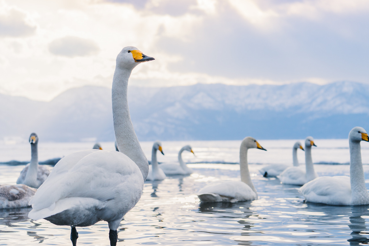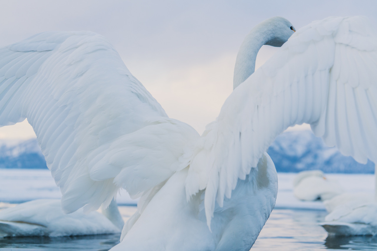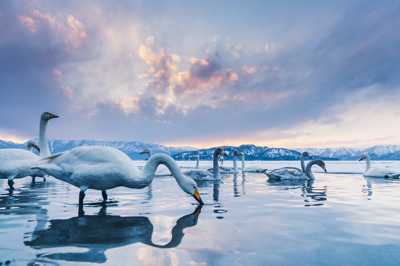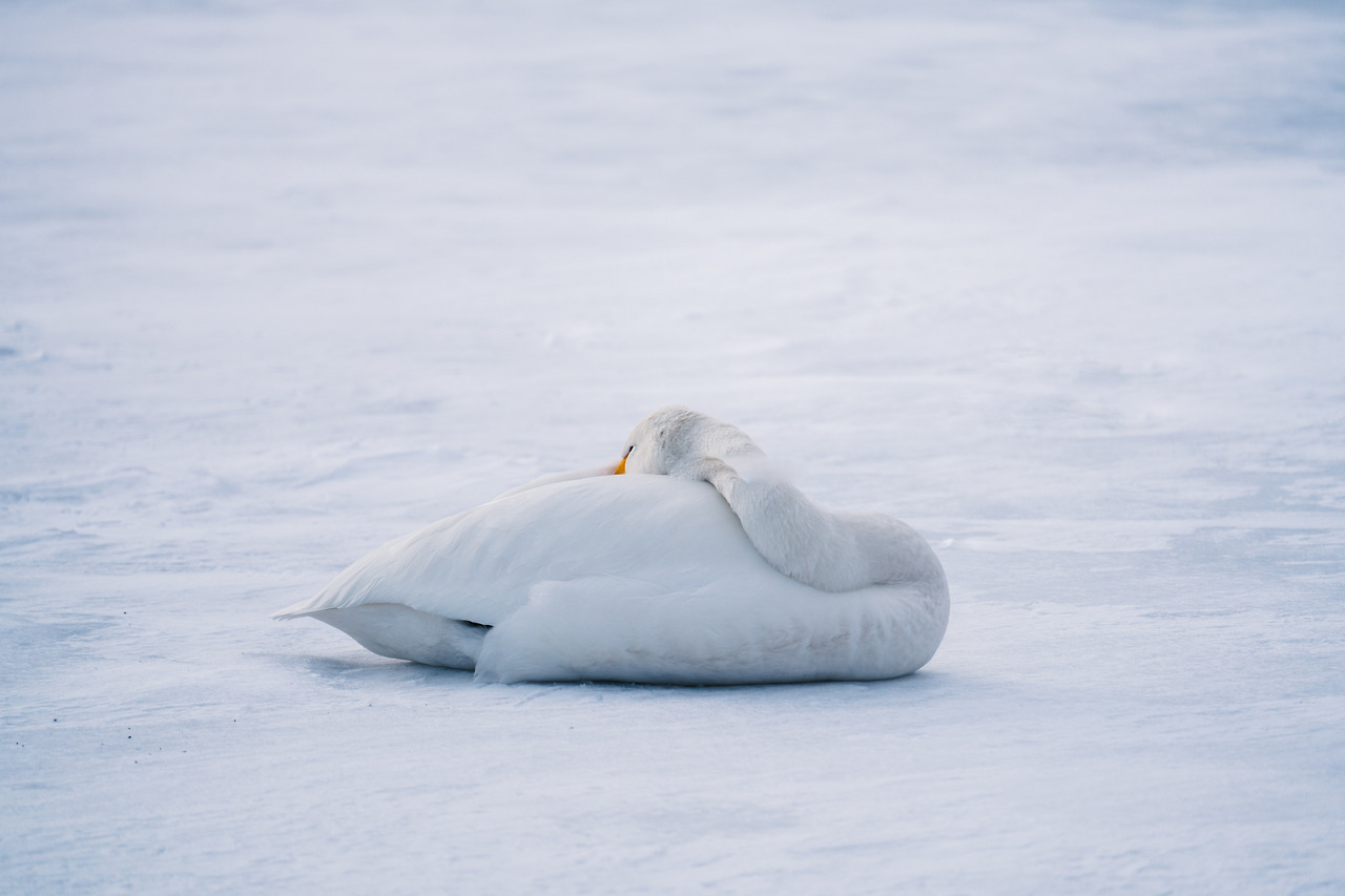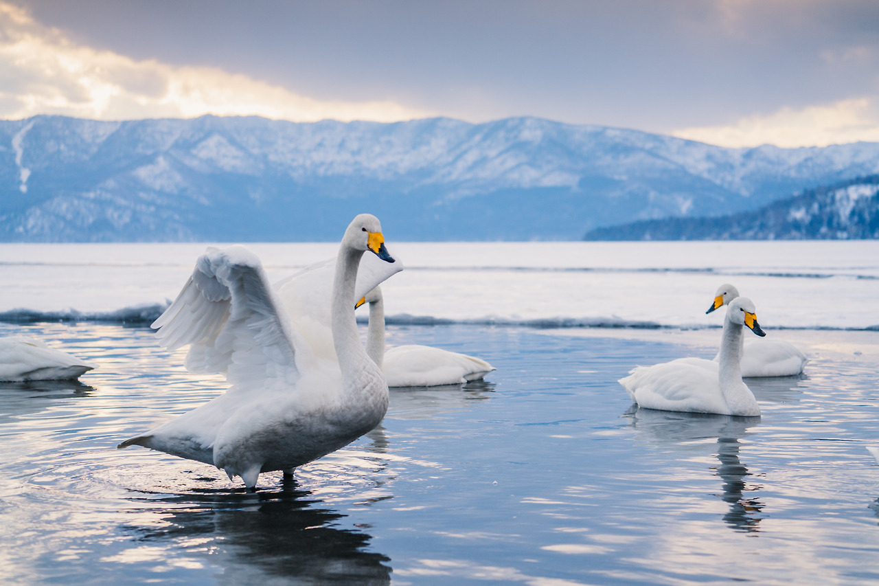 홋카이도의 겨울은 물론 춥지만 셔터를 누르기 위해 움직여서 그랬을까 노을이 지는 밤이와도 크게 춥진 않았다. 아무래도 온천수 때문인 것 같았다. 러시아에 살다가 따뜻한 곳을 찾아 이곳으로 오는 고니들이 새삼 귀여웠다. 이녀석들에겐 이곳은 '찜질방'과 다름없다.