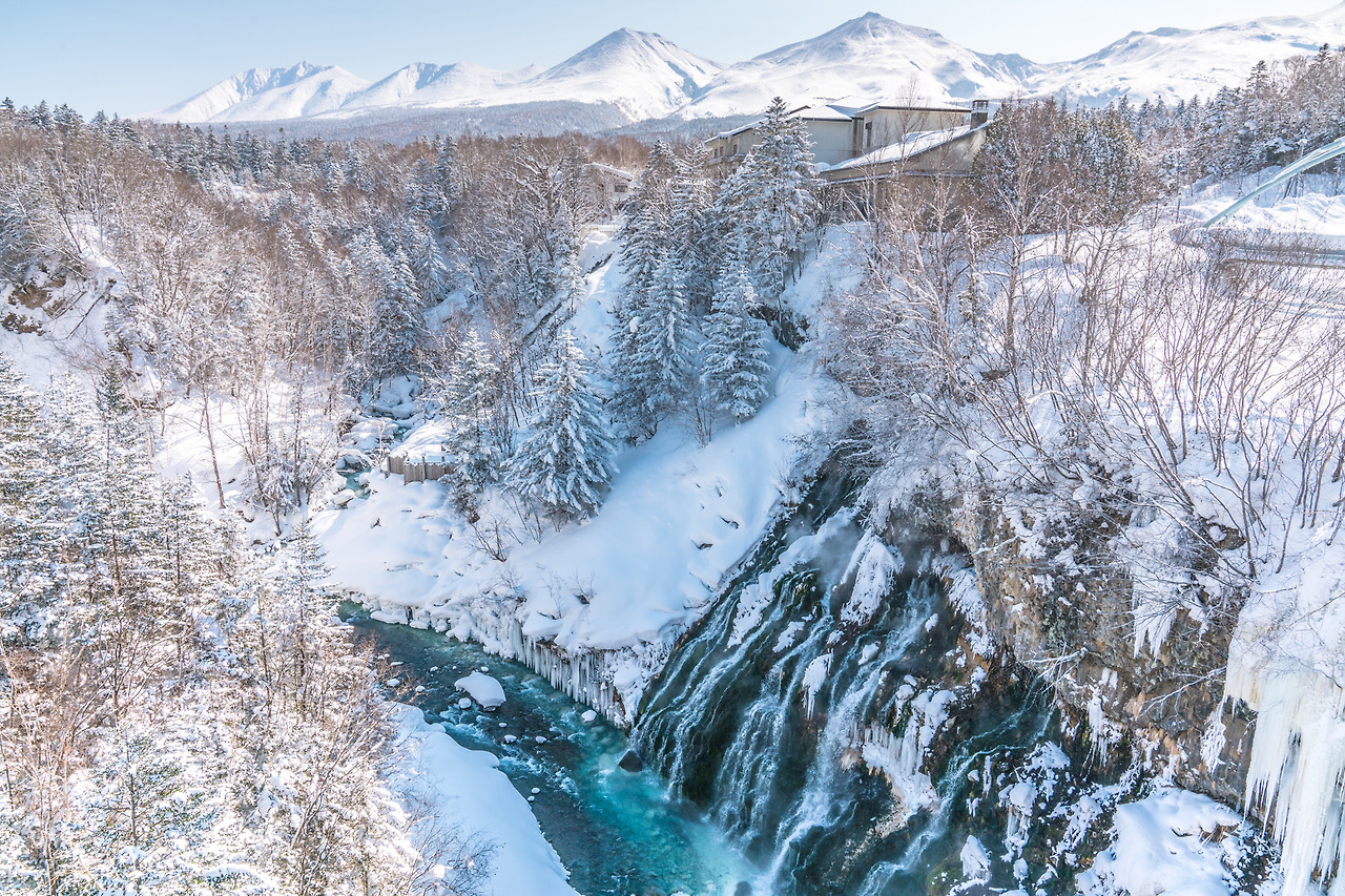 흰 수염 폭포에 도착하니 전날 내린 폭설에 나무에 쌓여 상고대가 보인다. 어젯밤 닝구르테라스에서 폭설에 덜덜 떨며 운전한 보람이 있다.