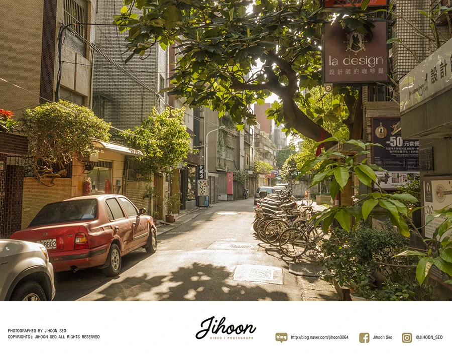 날씨가 좋아 다행이었다. 햇빛이 비추는 대만 골목은 너무 예뻤다. 4계절 내내 따뜻한 기후의 대만은 오토바이와 자전거를 참 많이 탄다. 대로변을 봐도 항상 스쿠터 부대가 신호등아래 맨 앞 라인을 차지하고 있다. 우리나라는 겨울이란 날씨에 어울리지 못한 경우도 있고. 오토바이의 이미지가 이상하게 불량하고 위험하다는 인식이 강해서 이처럼 경제적이고 편리한 이동수단이 많이 없다는 것이 안타깝다. 대만의 출퇴근길은 스쿠터부대가 대로를 꽉 채우고 있는데 그 모습이 중세시대 영드나 영화에서 나오는 기마병 같은 수준이다.