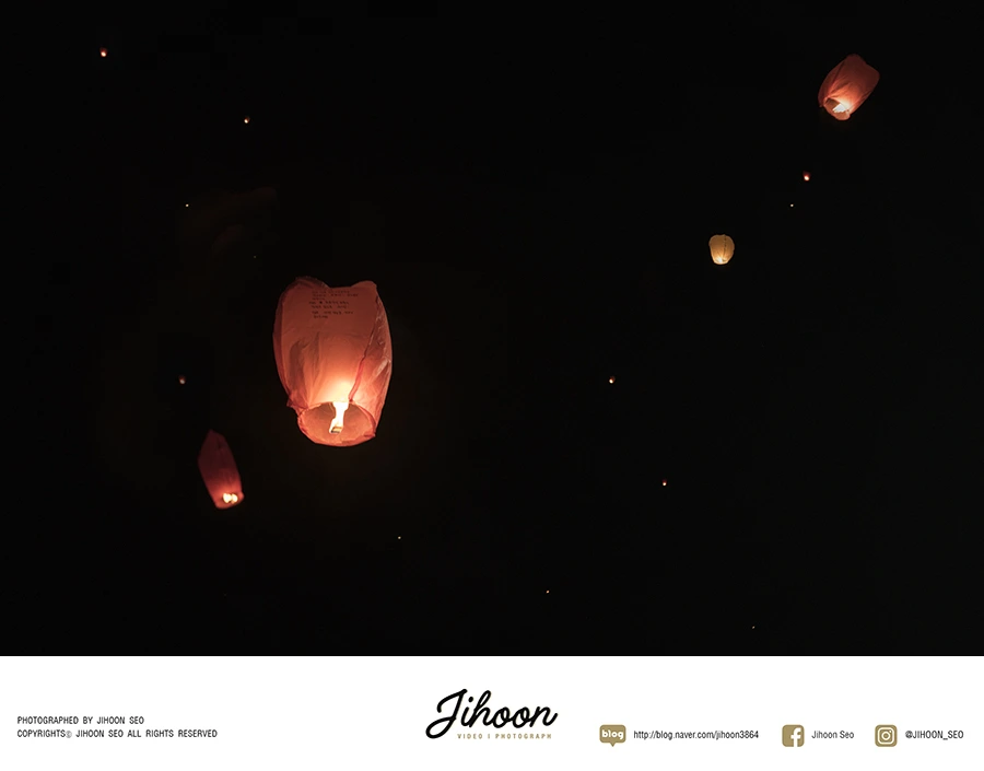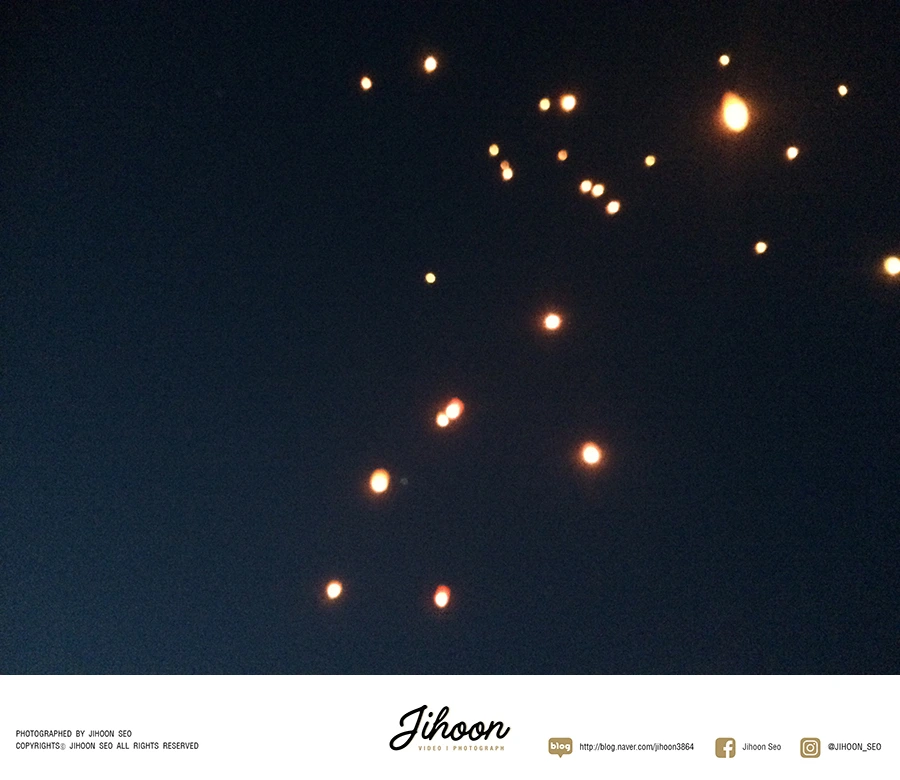 삼삼오오 모여 날리는 풍등들이 꽤나 수가 모이면서 절벽과 바닷가에 배모양으로 만든 익스테리어가 인상적인 가게에 조명을 더해 황금빛으로 물들어 퍽 그럴싸한 풍경을 만들어냈다. 풍들들이 만들어내는 비주얼은 치앙마이의 그것처럼 화려하진 않았지만. 반딧불이의 모임처럼 반짝반짝 예뻤다. (아침이 오기 전까진..)