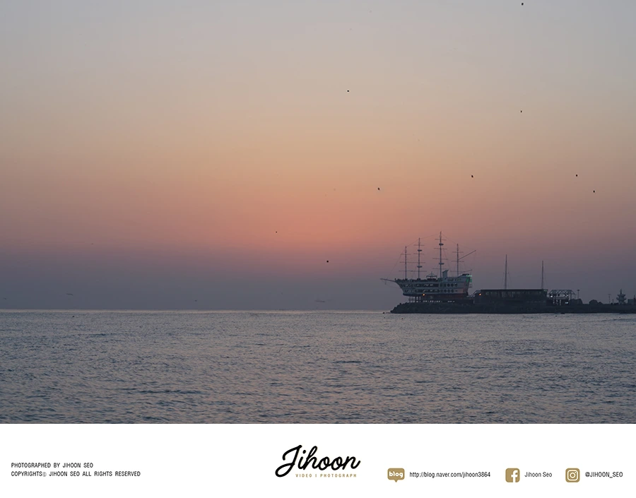 맘에 들지 않았던 범선과 크루즈도 노란 해를 받아 실루엣으로 나오니 90년대 보던 홍콩영화가 생각나기도 한다.