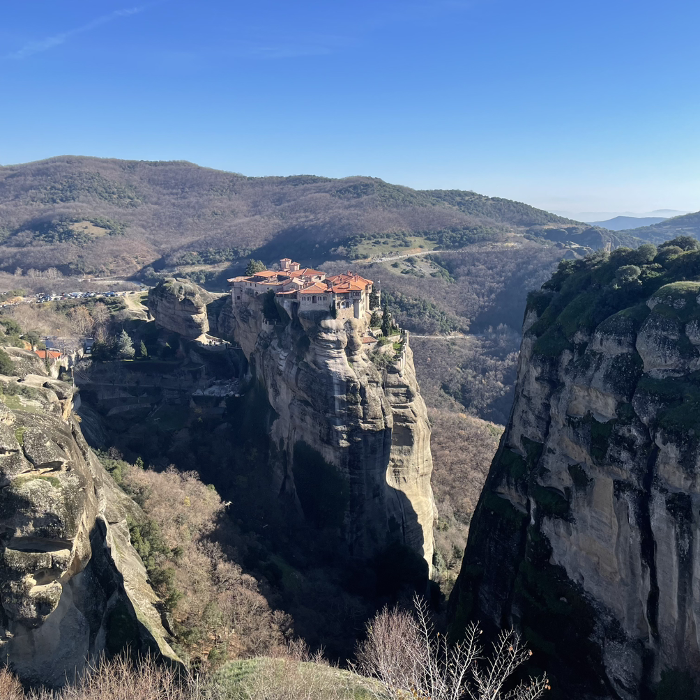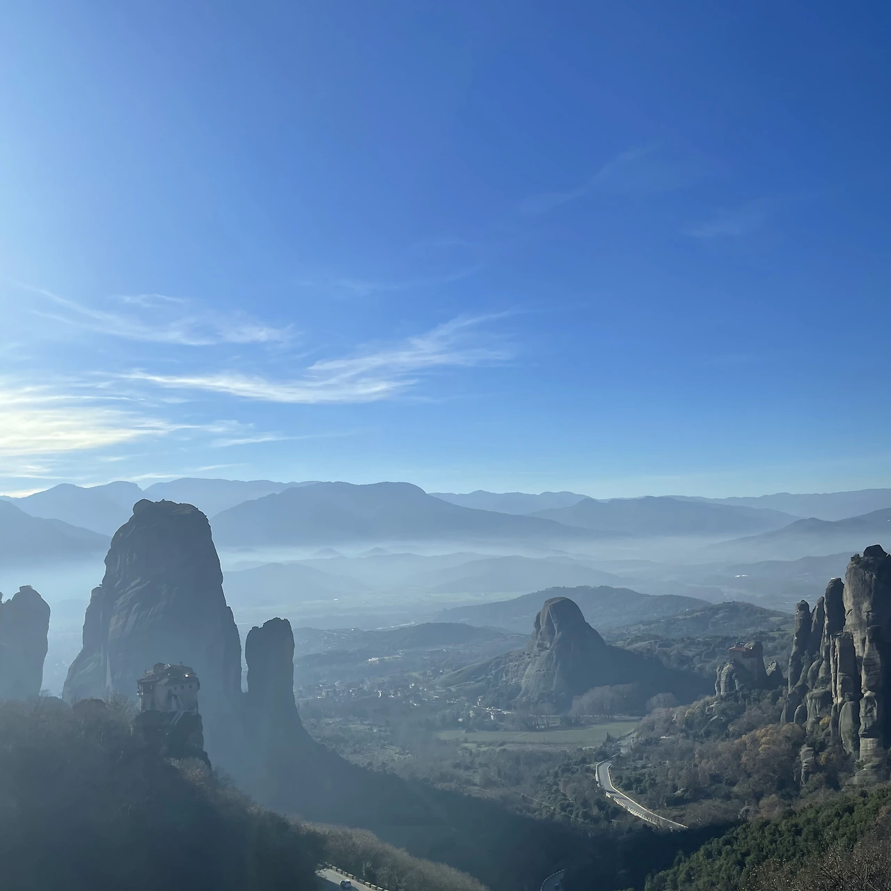 수도원 안에서 보는 밖의 돌산들은 다른 매력이 있었다. 어째 지구 같다는 생각보다는 화성 아니면 목성 같다는 느낌이었다. 목성은 가스로 이루어져 있다고 하니 아무래도 화성이겠다. 미세먼지 하나 없는 하늘빛 하늘 아래로 먹먹한 안개가 깔려 있었다. 그 안개 사이사이로 돌 산들이 하나하나 불규칙적으로 자리 잡고 있었다. 그리스 신화가 태동한 이유를 알 것 같았다. 아무리 삭막한 사람이라도 이런 곳에 몇 년을 살다 보면 그런 신화적인 이야기정도는 몇 편을 써내려 갈 수밖에 없다.