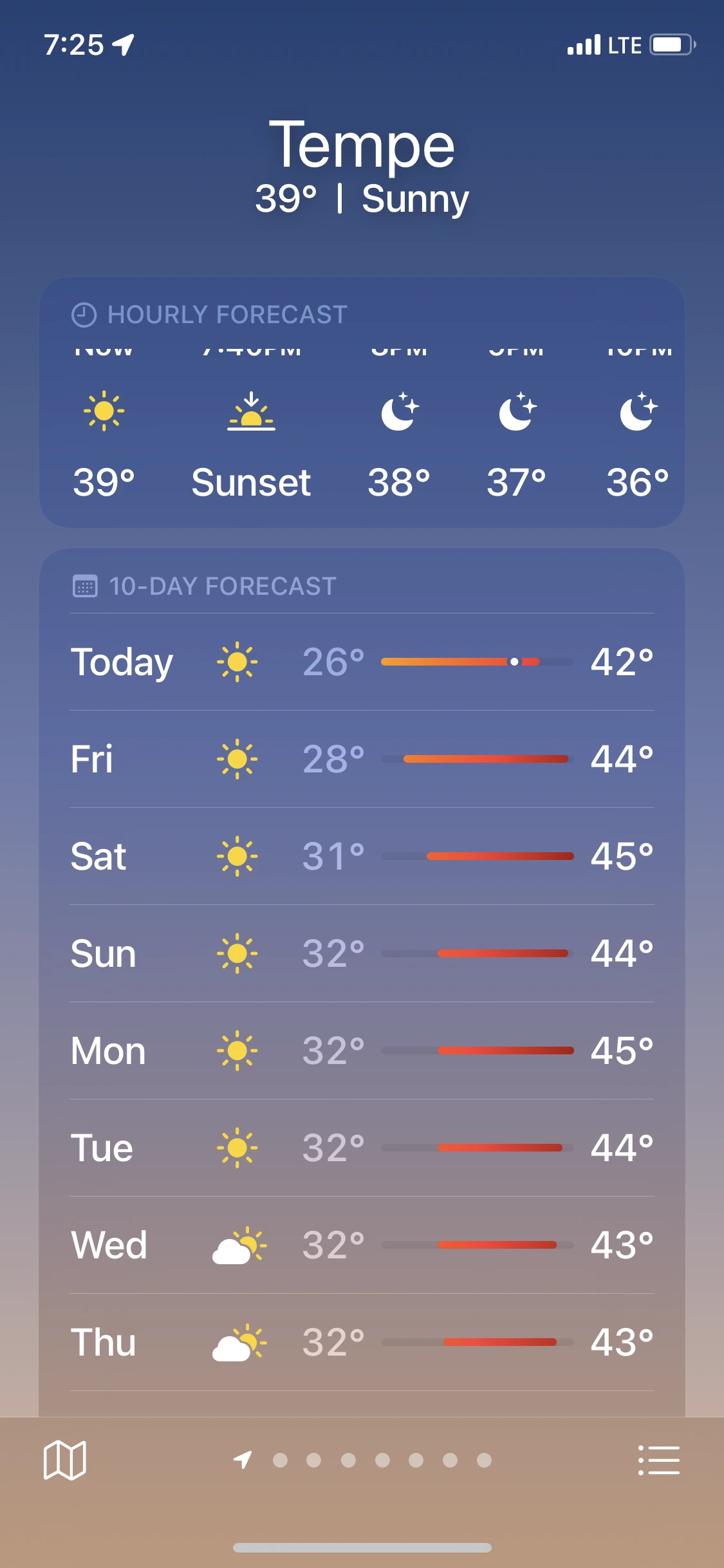 얼마 전 친구가 메시지를 보내왔다. 2050년에는 지구 온난화로 피닉스는 살 수 없는 도시가 된다는 내용이었다. 살 수 없는 도시에 집 사면 안 되겠다는 게 요지였다. 이곳의 제일 더운 날씨 기록은 2020년 화씨로 120도 (섭씨 약 50도) 찍고 Phoenix에서 200명 정도 더위로 사망했다고 한다. 작년 8월 이곳에 처음 도착했을 때, 밤까지 열기로 가득 찬 건식 사우나 같은 도시를 체험하면서, 아 이런 더위가 있구나...라는 걸 경험했다. 여름이면 우기 몬순이지만, 다행히 습도가 없다. 건조하기 때문에 그늘에만 가도 시원해서 살 수 있는 곳 같다. 습도가 없다 보니 해가 없는 밤에 38도 정도만 돼도 시원하게 느껴진다. 이곳 사람들은 플로리다나 텍사스와 비교하면서 '그래도 우리는 습도가 없으니깐' 하면서 다행으로 여긴다. 그러면서 매일 날씨를 확인한다. 오늘은 나갈 수 있는 날씨인지 아닌지 말이다. 1-2도 정도의 차이가 크다는 걸 알게 됐다. 이곳의 여름을 보내보니 45도-48도는 밖에 나가면 안 되는 날씨이다.
