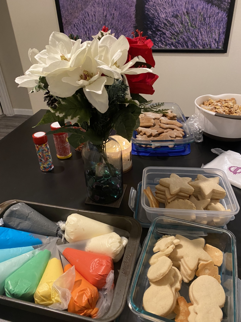 크리스마스 시즌에 쿠키 데코레이션 파티를 열었다. 저건 보통 너무 달아서 잘 먹진 않고 장식만 했던 기억이 난다. 진저 쿠키 버터 쿠키는 친구들이 집에서 직접 구워 왔고, 미리 만들어놓은 설탕 크림을 얹혀서 장식을 했더 날.