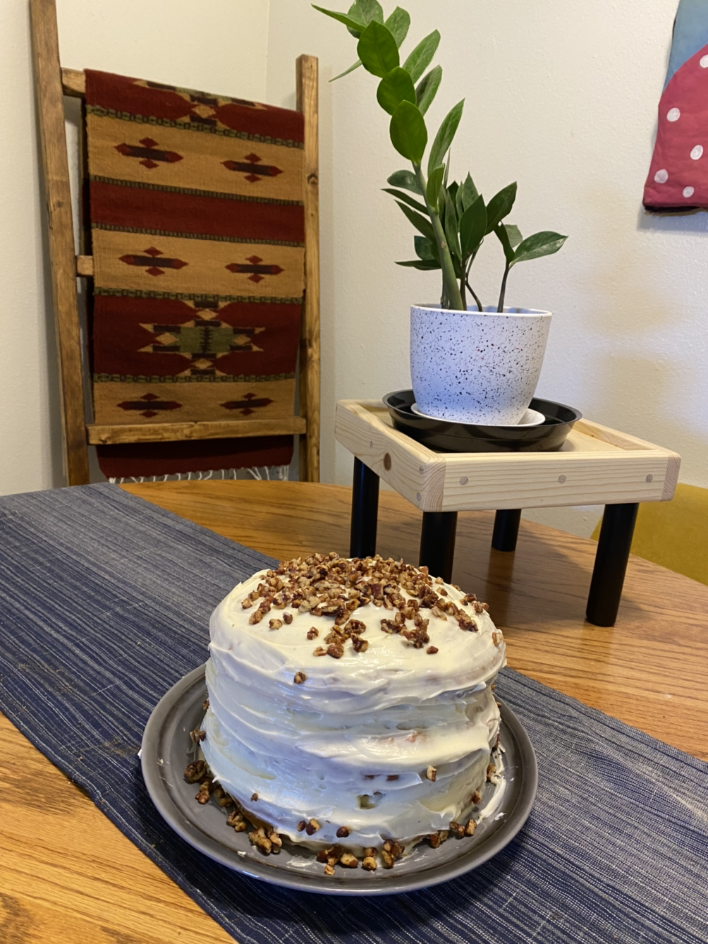 이곳에서 처음 맞은 생일에 동기가 만들어준 당근 케이크. 먼 타지에서 홀로 와있다고 생일이 특별해야 한다며 케이크를 만들어줬다. 홈메이드 당근 케이크는 정성과 맛이 감동이었다. 그동안 사 먹어만 봤지 이렇게 당근 갈고 반죽해서 먹은 것은 처음이다. 베이킹은 미국에 와서 처음 해보게 되었기 때문에, 케이크에 들어가는 넛 머그 같은 재료도 만드는 기구도 낯설었다. 소중한 사람들에게 앞으로 생일날 케이크를 만들어줘도 좋겠다는 생각을 했다. 대신 이곳에서 나는 케이크 대신 미역국을 끓여줬다.