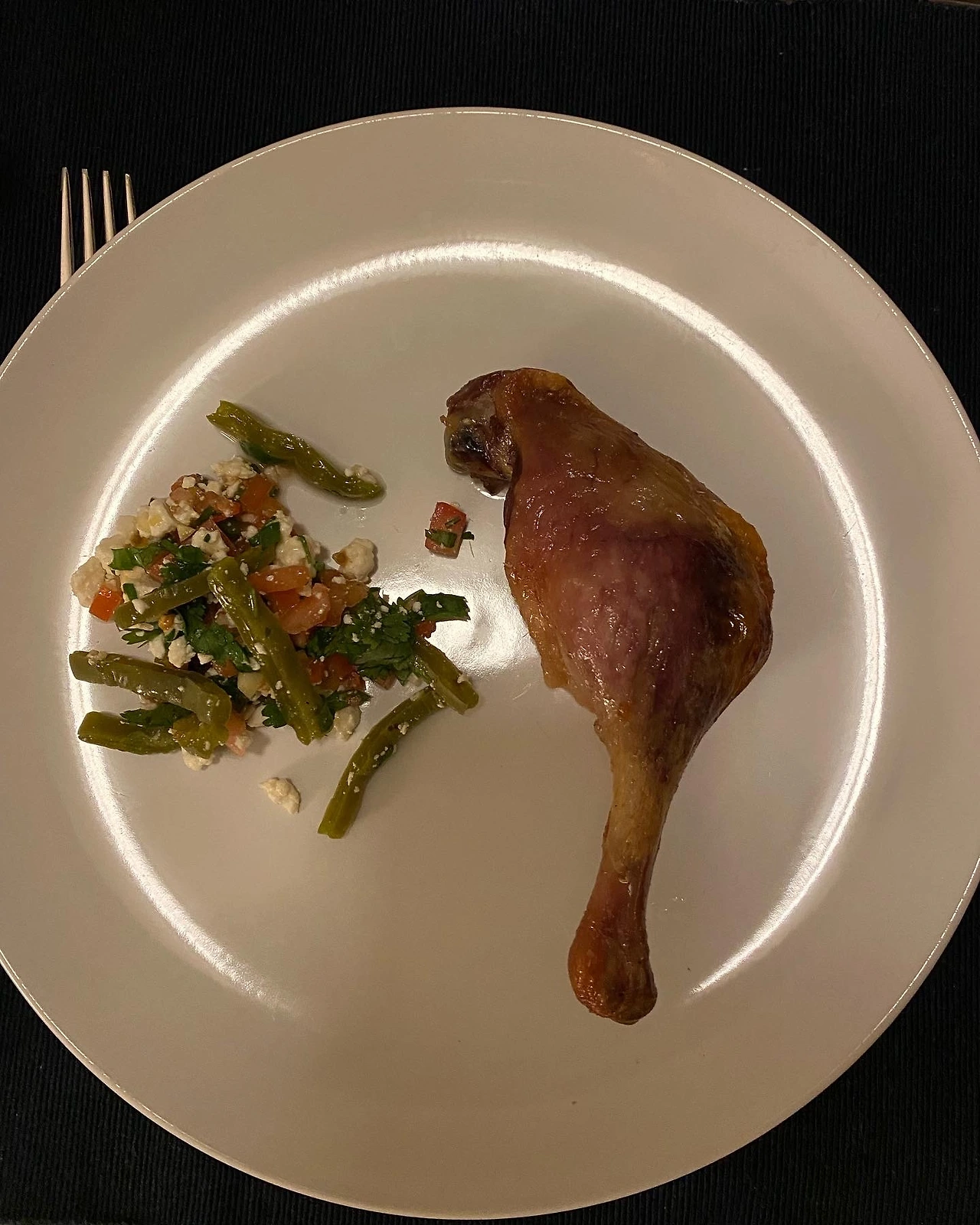 프렌치 오리 다리 오븐 구이와 선인장 샐러드. 오븐에 하루 종일 구웠다면서 저녁에 오라고 했다. 기름이나 버터 없이 오리 다리에서 나오는 기름으로 통마늘 넣어서 굽고 다시 기름 발라서 굽고 하는 과정을 거치는 프렌치 요리라는데 이름은 모르겠다. 선인장을 사 왔다고 선인장의 가시를 떼어내고 데치고 잘라서 샐러드를 만들어서 같이 저녁을 준비했다. 선인장은 오쿠라처럼 미끄덕한 맛이다.