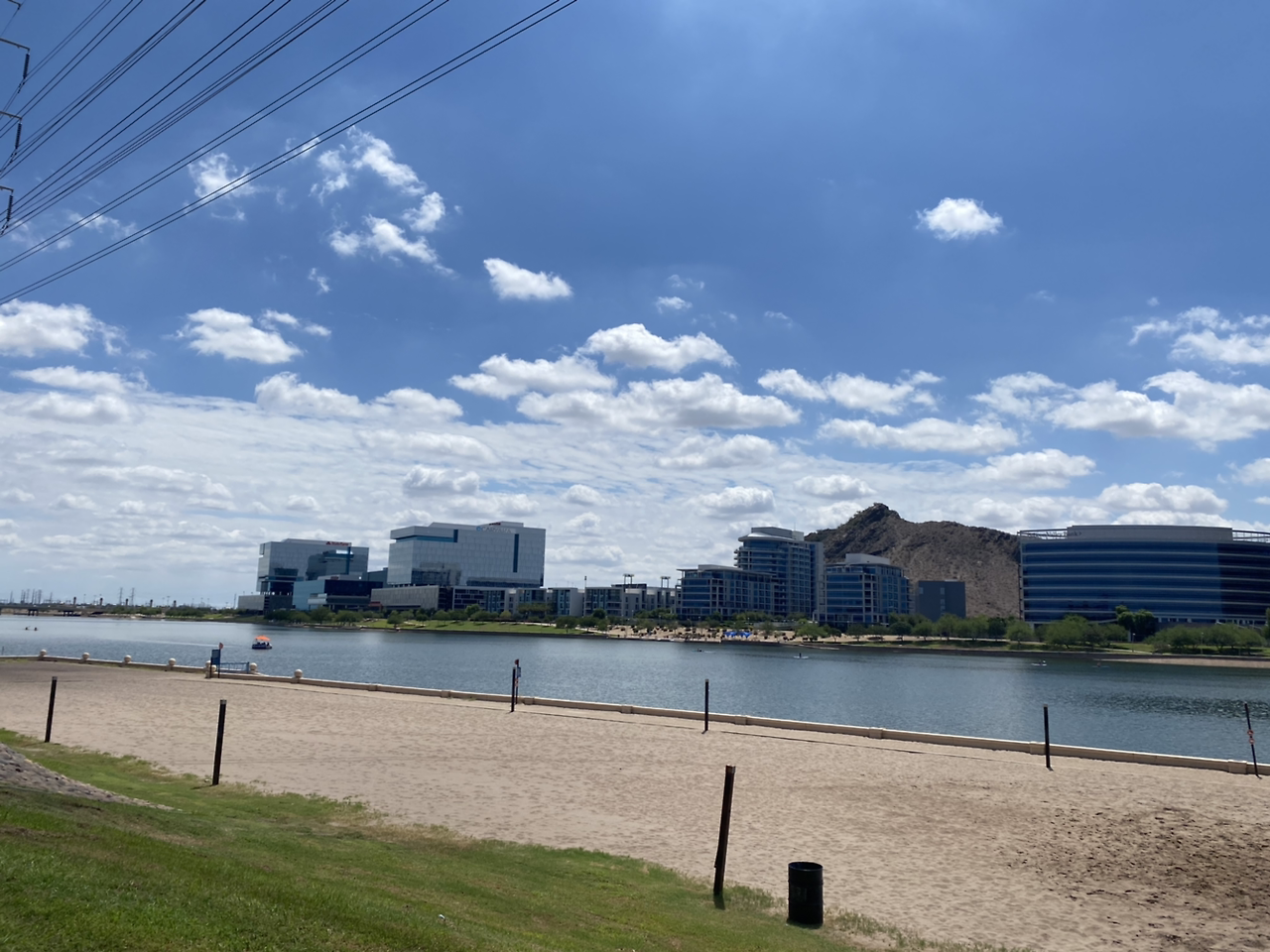 날씨가 조금만 좋으면(조금이라도 덜 더우면) 바로 야외 활동을 하는데 이 사막 도시 안에 작은 강을 만들어놨다. 규모가 인공이지만 너무 커서 처음에 놀랐던 곳. 나름 모래도 있어서 해변가 beach라고 부른다. 학기 본격적인 시작 전에 일요일 오전 잠시 친구와 자전거 탔다. 크로와상같은 구름이 떠있는 하늘 보면서 예쁘다며 자전거가 이번 주말의 최고의 재미있는 활동이었다.
