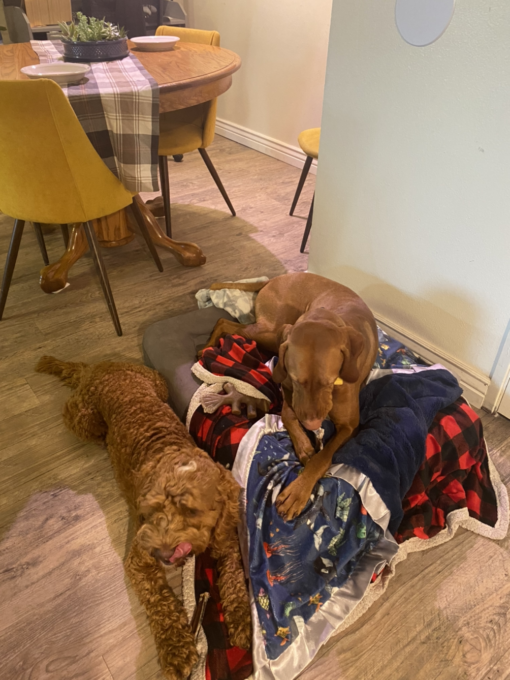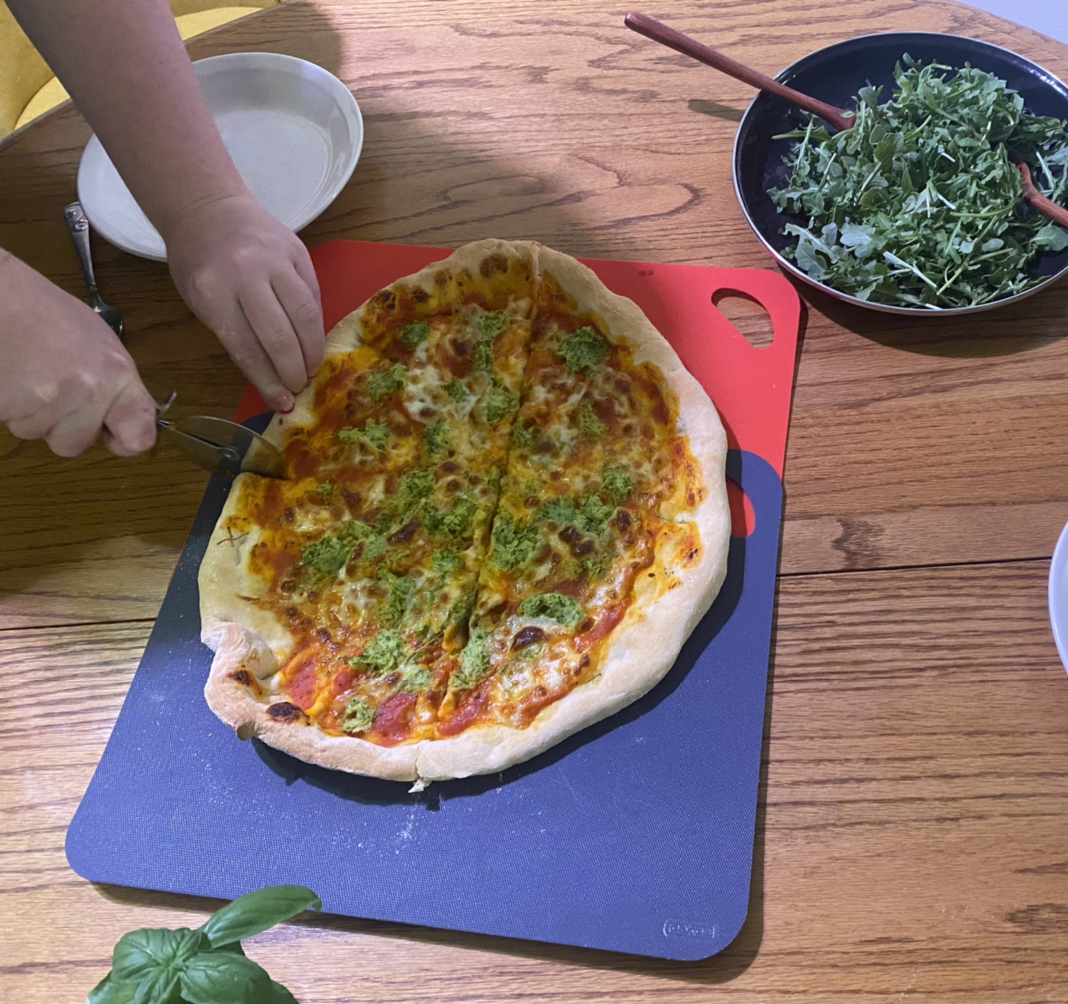 수업이 끝나고 저녁 초대를 받는 경우가 있다. 미국은 반려견들도 보통 대형견이다. 첫 주 기념으로 함께 한 홈메이드 저녁 피자.