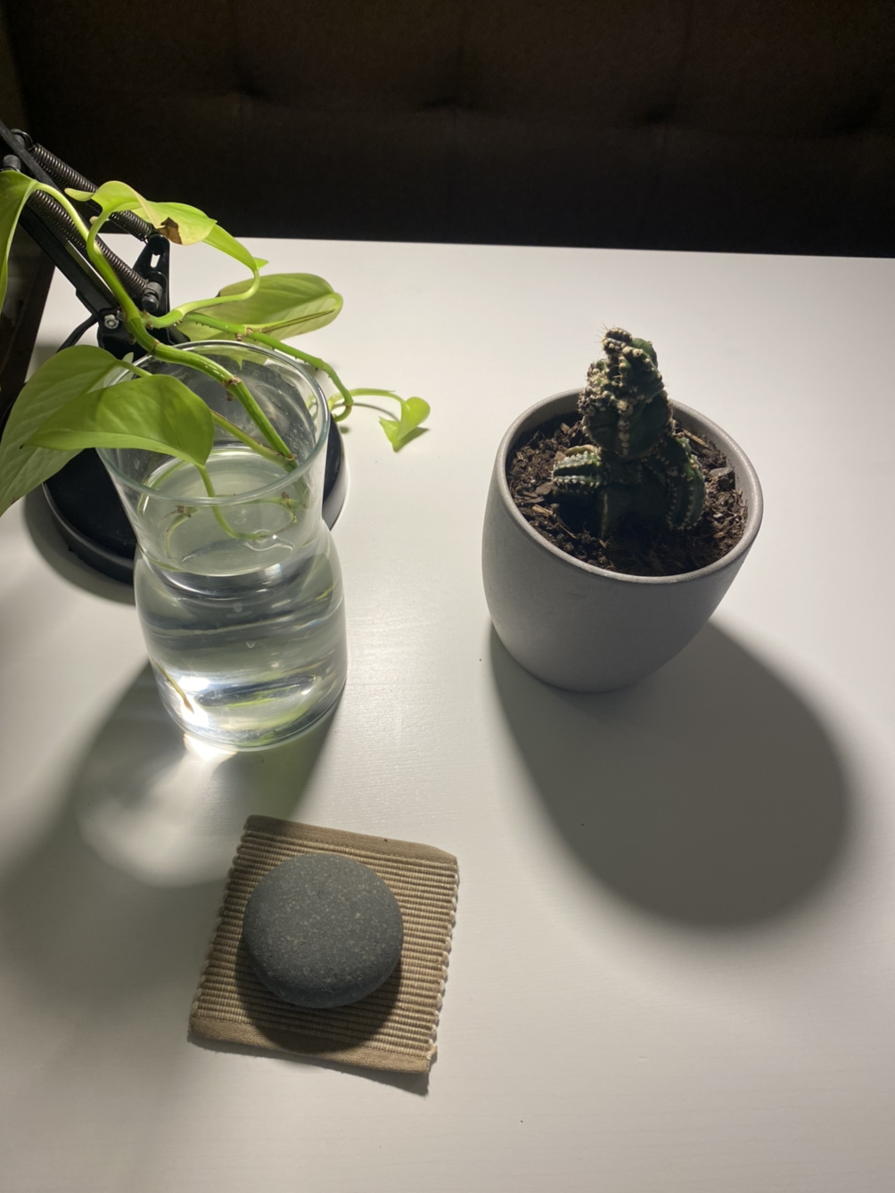 이곳은 가끔 식물을 선물을 해주는데 기르던 식물에서 잘라서 배양 후 화분에 옮겨심기도 한다. 이곳은 사람보다 더 큰 선인장이 많은데 사막이라 집 마당에 선인장을 많이 키운다. 친구가 산책하다가 선인장 가지치기로 잘려나간 선인장을 화분에 심어서 선물해준 작은 화분.