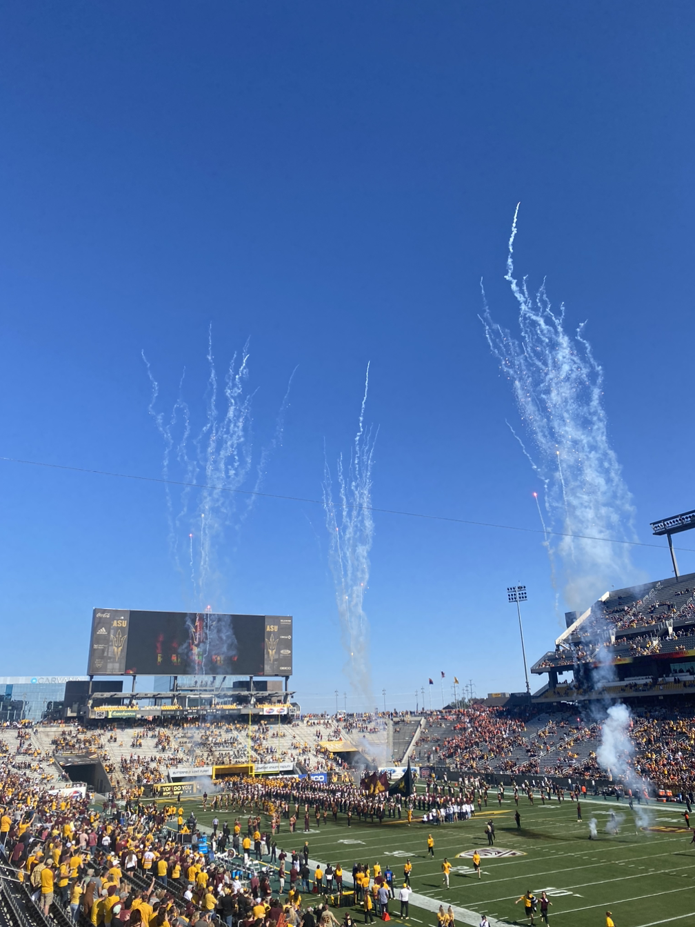학교 팀이 잘하는 팀이 아니라서 아주 흥미롭게 볼 수 있는 순간들이 적지만, 홈그라운드 경기라서 터치다운 (6점 획득) 할 때는 폭죽도 쏘아 올려준다.