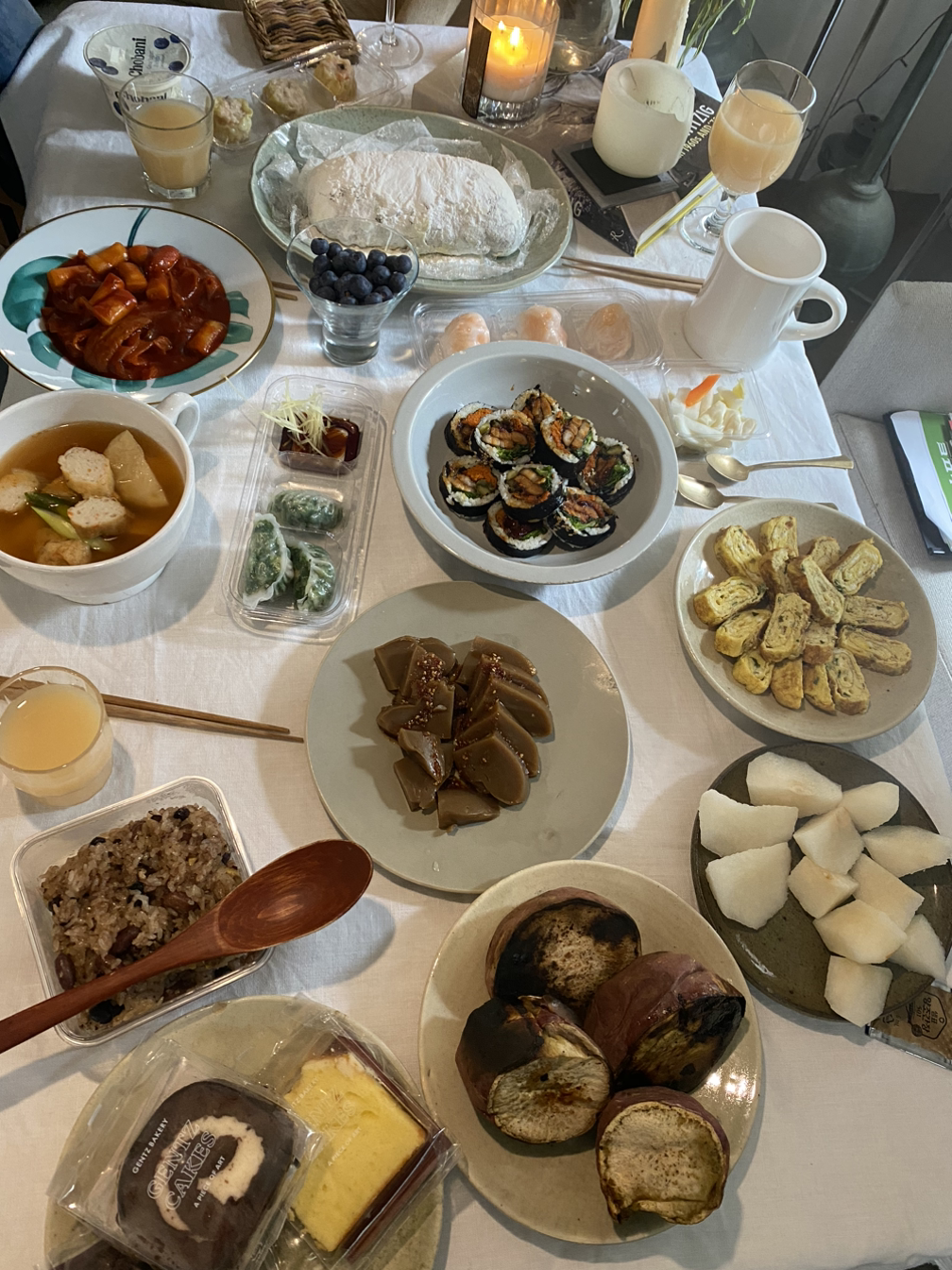 그리고 친구들과 함께 차린 집밥과 디저트 상차림 :) 한국에서의 분식은 소울푸드이다.