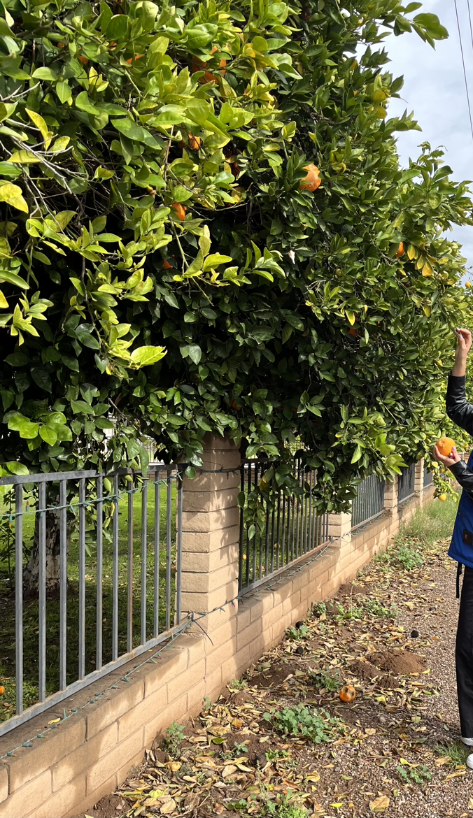 간단히 점심을 먹고, 작년에 오렌지를 땄던 곳으로 갔다. 작년에 땄던 공공장소에 있던 나무를 잘 찾지 못해서 나무가 많이 있는 동네로 갔다. 울타리를 경계로 울타리 안쪽에 있는 열매는 사유지에 있는 열매라 따면 안 되고, 거리로 나와 있는 열매는 딸 수 있다. 맥가이버 칼도 챙겨 온 친구는 오렌지를 따기 전에 맛을 보고 괜찮으면 따서 그곳에서 몇 개를 따서 넣었다. 자리를 이동해 가면서 몇 개씩 따다 보니 가방이 한가득 찼다. 오렌지도 종류가 다양하고, 자몽, 레몬, 귤 (tangerine) 등을 같이 따다 보니 금방 찼다.