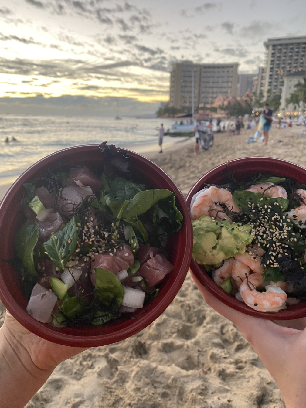 하와이에서의 음식은 정말 다 맛있다. 일본인이 많이 살기도 오기도 하는 곳이라 그런지 일본 음식점도 괜찮고, 무수비를 파는 곳도 많아서 김밥 사 먹듯이 하나씩 사기도 했다. 신선한 포케도 배를 채우는 건강한 한 끼였다. 하와이 아사히볼도 신선하고 배를 채우는 든든한 한 끼 같은 간식이다.