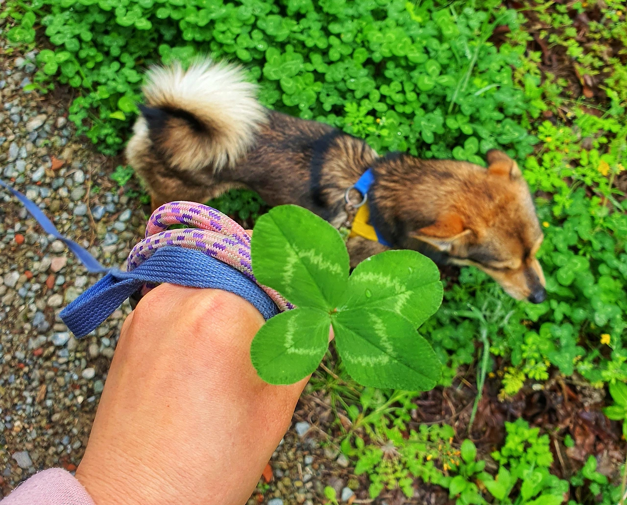 어느 날은 네잎클로버가 한눈에 딱! 하고 들어오는게 아니겠어요? 이 모든게 다 댕댕이들 덕분인 것 같아요.