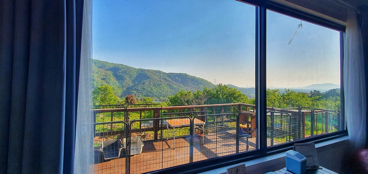 우리 과수원집은 방이 없는 원룸식 스튜디오로 크기가 작지만 창에 앉아 바라보는 풍경이 정말 힐링입니다.