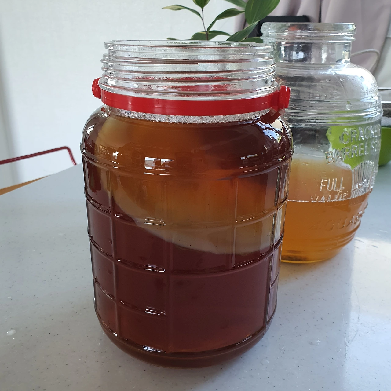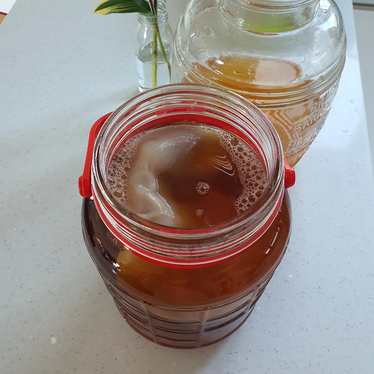 여보씨의 콤부차는 시큼한 식초냄새를 내며 잘 발효중이예요.