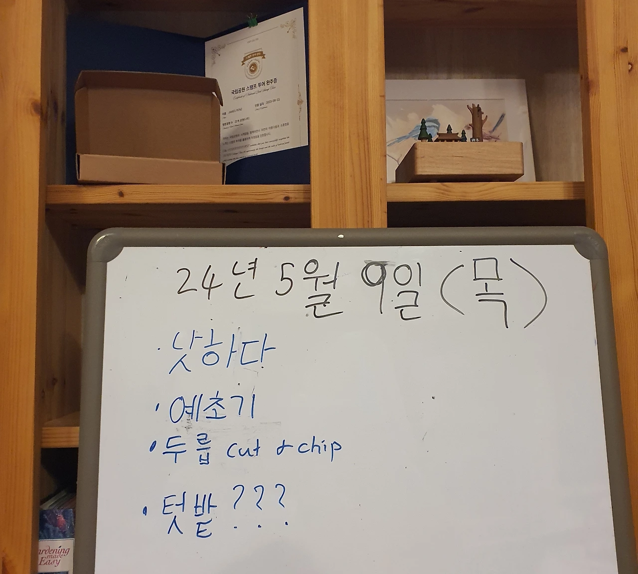 몇일 째 낫질, 예초기, 두릅 자르기, 텃밭정리를 하고 있는지 할일은 같은데 위에 날짜만 바꿔쓰고 있어요. 귀농해서 농사짓는다고 하루종일 밭에나가 밭일만 할꺼라 생각하실지도 모르겠는데, 우린 농사뿐만이 아니라 인생자체를 약간은 느슨하게 사는 편이라^^;; 할일도 시간을 갖고 느슨하게 하는 편입니다.