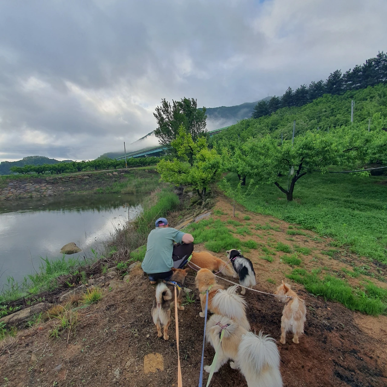 비가 그치고 촉촉할 때 산책을 갑니다. 강아지들은 촉촉한 자연의 냄새를 정말 좋아하는 것 같아요.