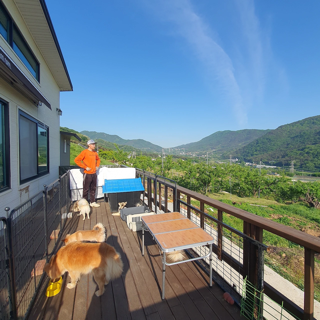 날씨가 개면 강아지들도 데크에 나와 햇볕을 쬡니다.