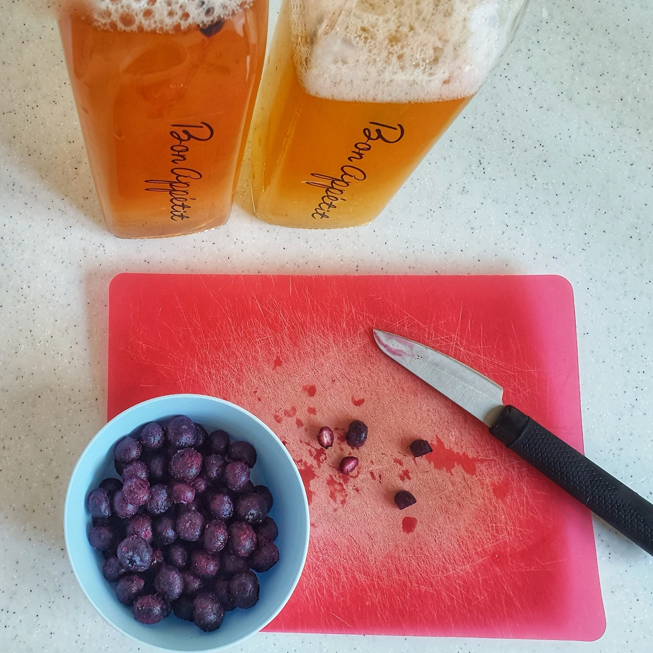 과일을 넣고 콤부차 2차 발효를 시킵니다.
