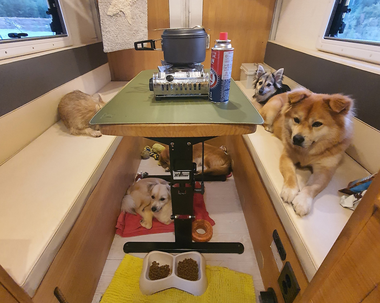 배가 고프니 캠핑카로 들어와 오트밀을 해먹구요.