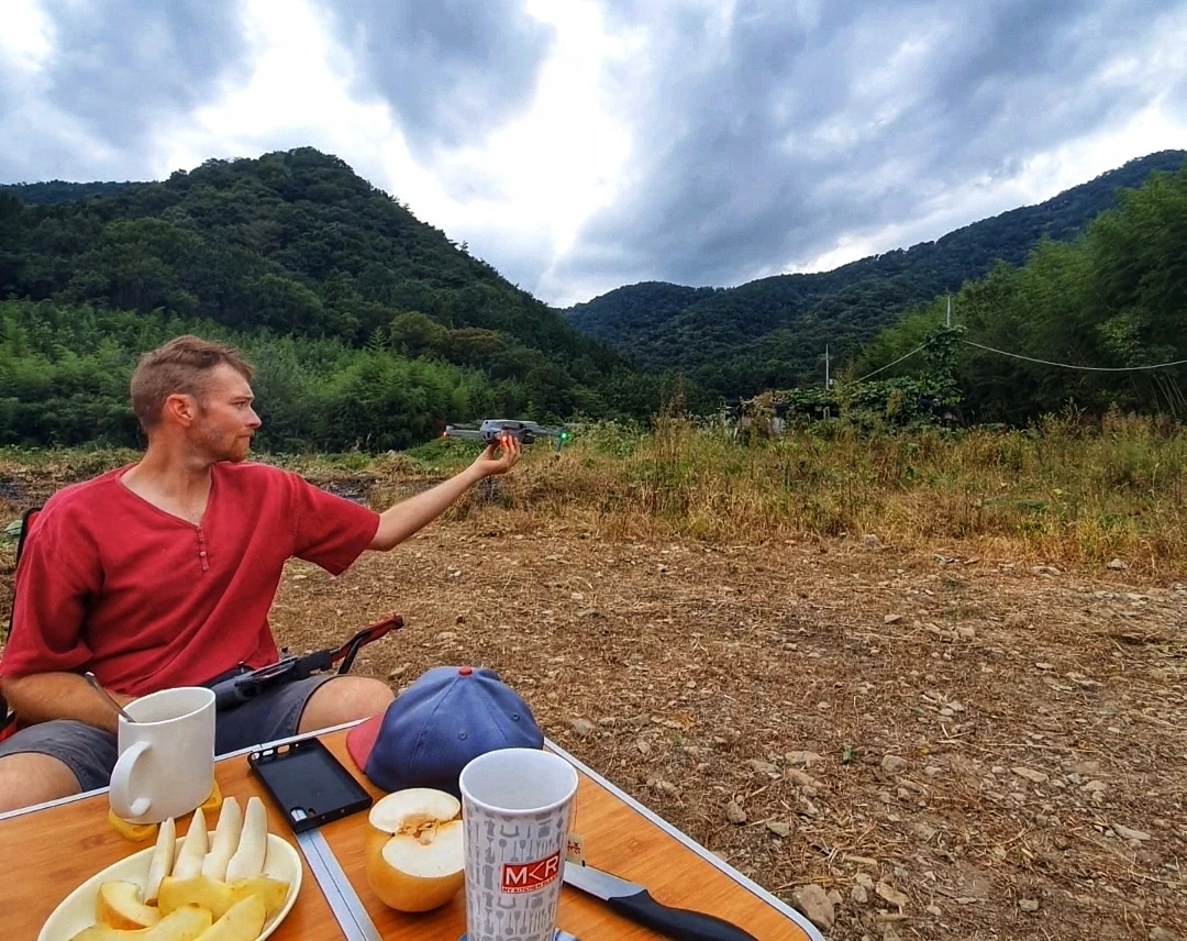 빗방울이 떨어지지만 여보씨는 드론도 날리구요.