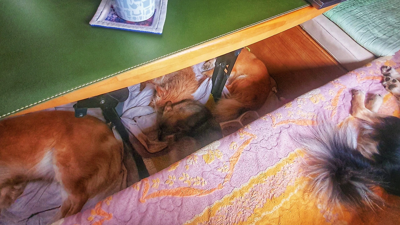 산책하고 온 강아지들은 낮잠을 늘어지게 자구요.