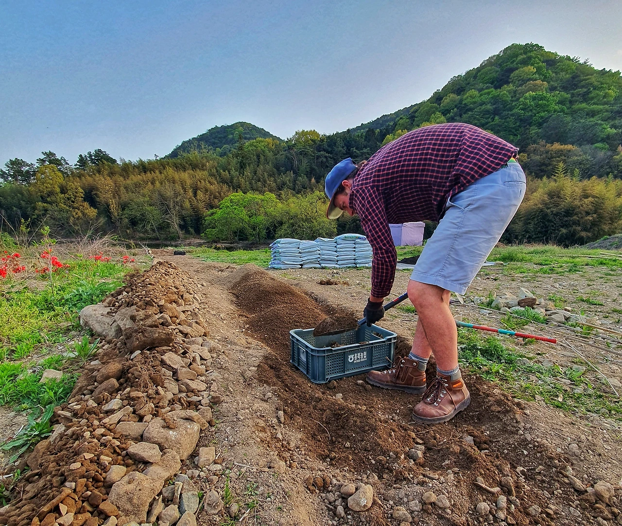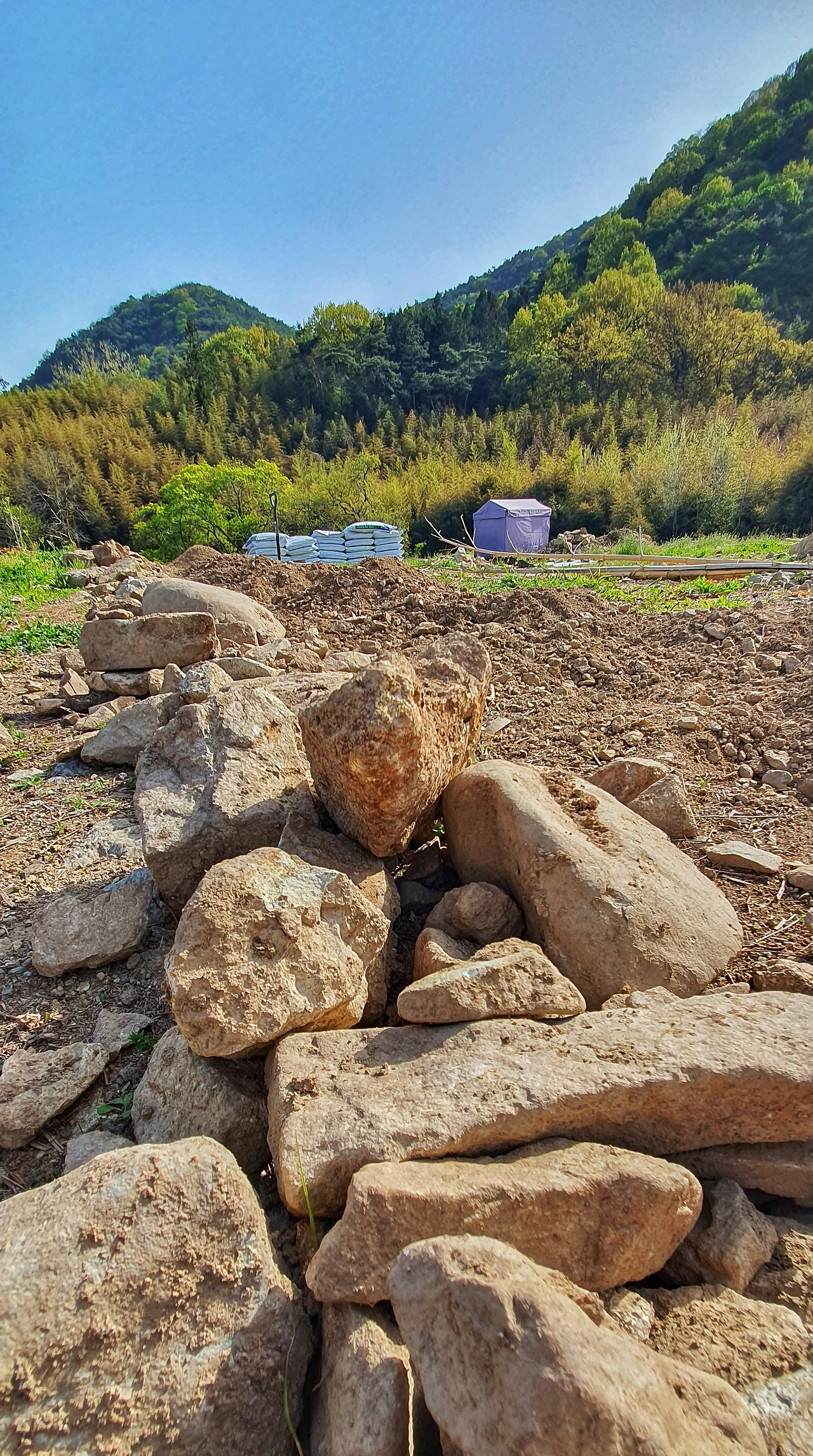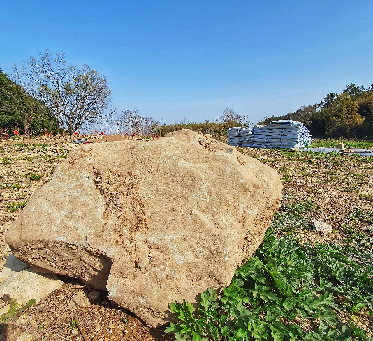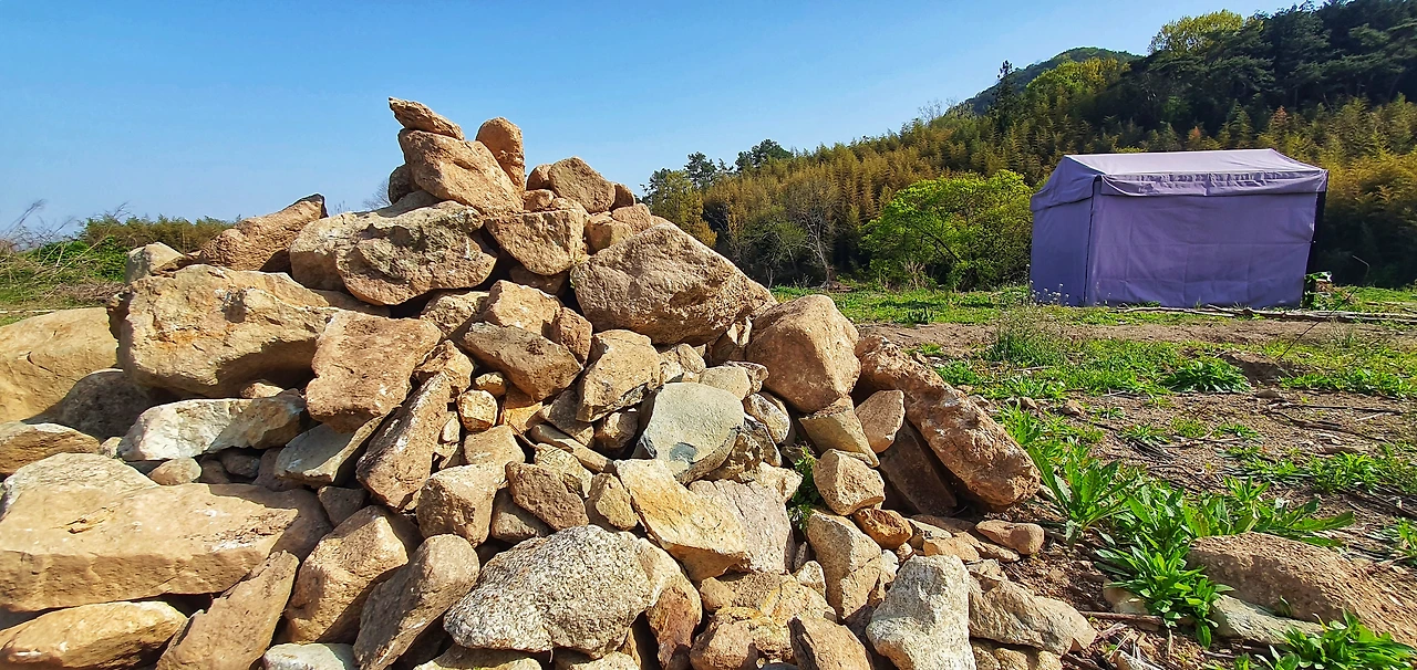 나머지 돌은 다 섞어 밭 가장자리 경계석