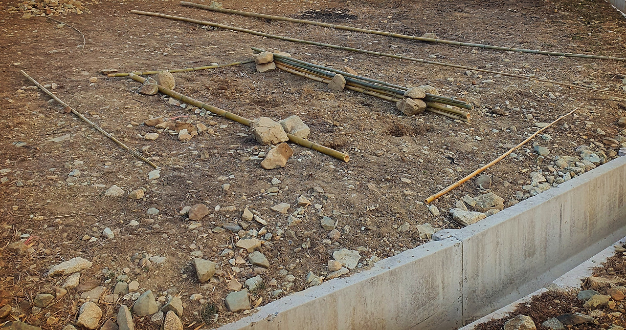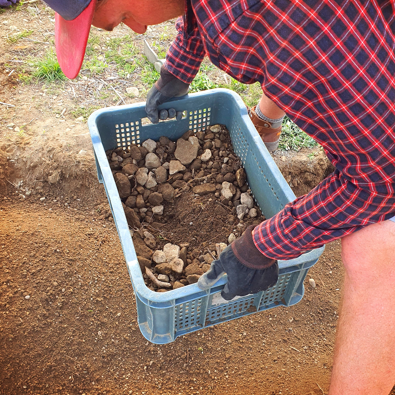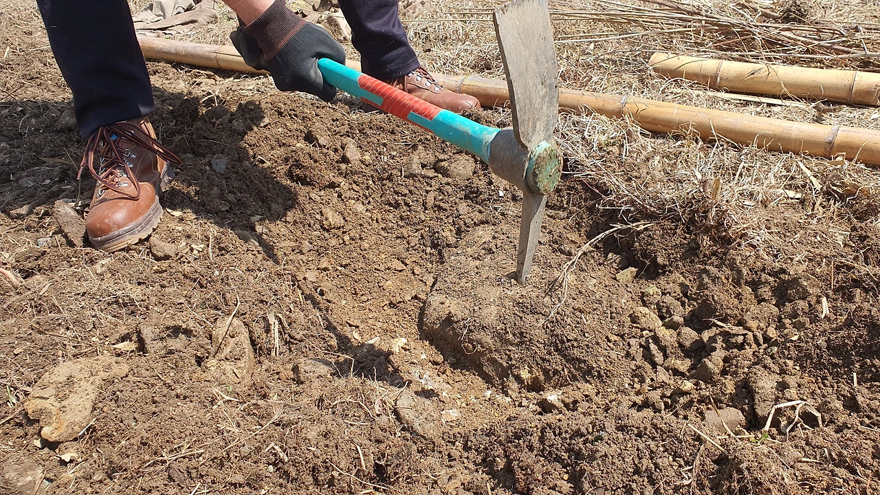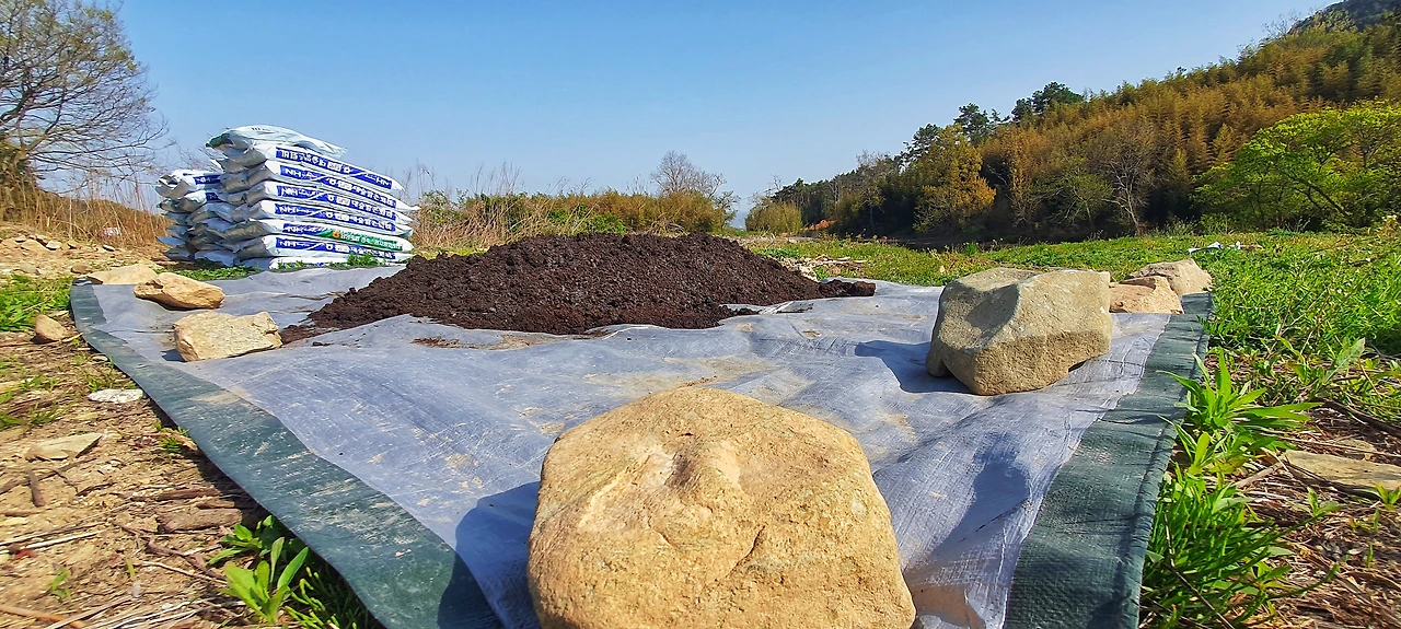 나머지 돌은 다 섞어 밭 가장자리 경계석