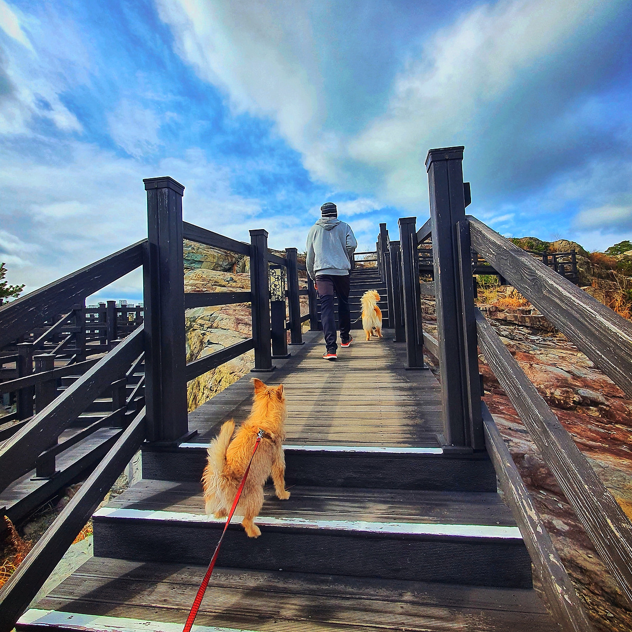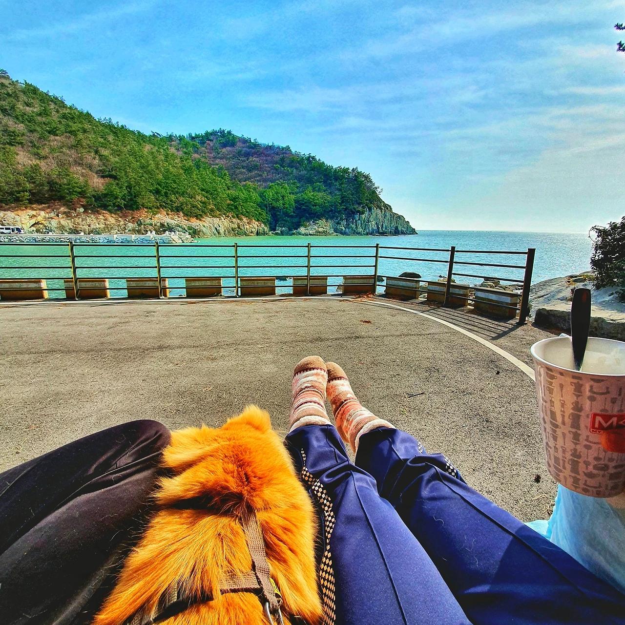 배가 부르니 캉겐이와 대추를 데리고 산책을 가야겠어요.(전라남도 여수시 웅천 이순신공원)