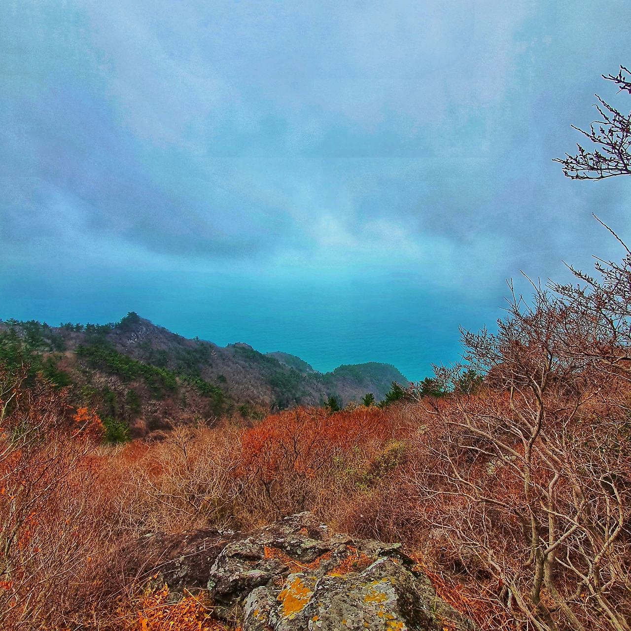 아이코 안개와 먹구름이 자욱해 경치가 잘 보이진 않습니다.