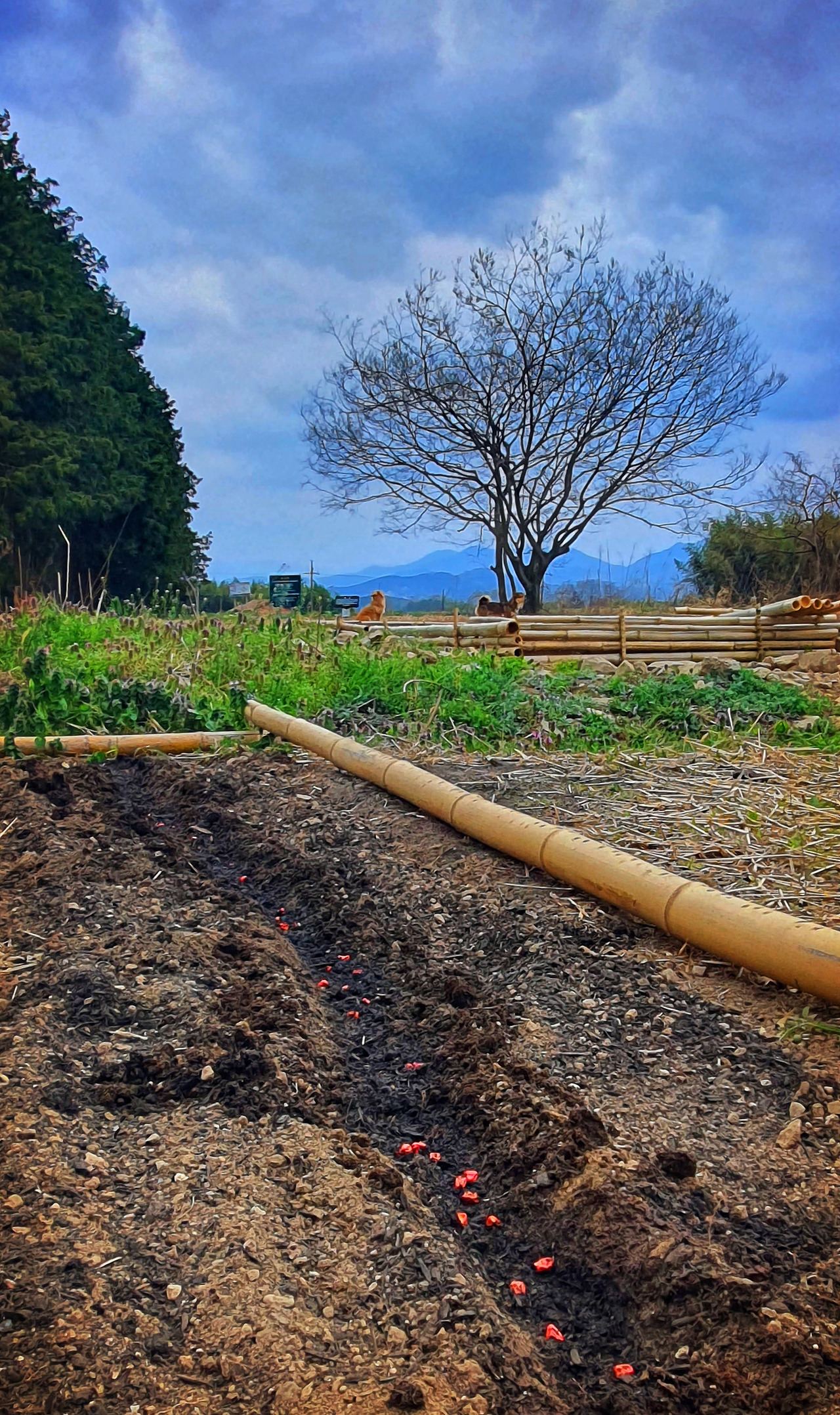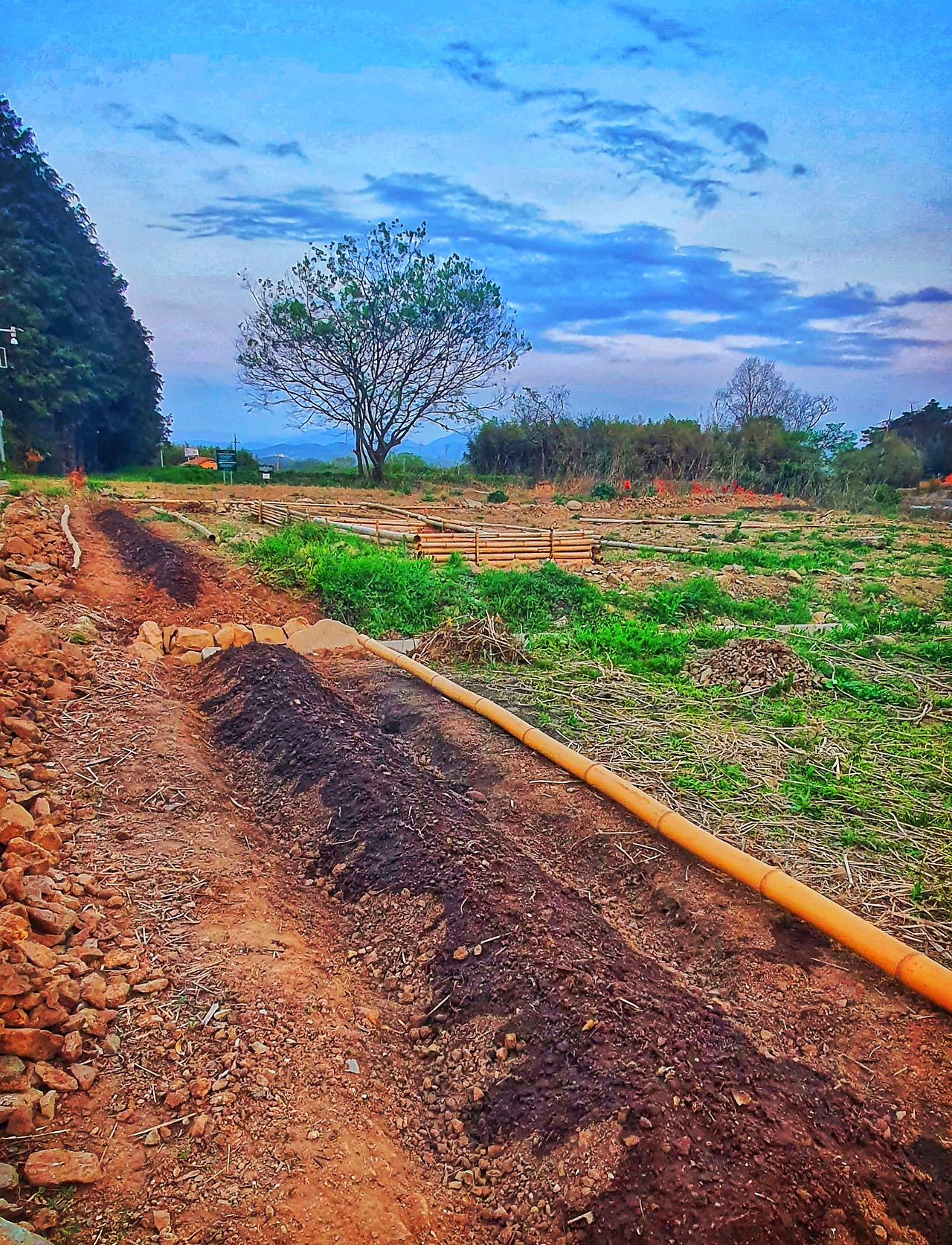 대나무 틀밭 2개와 밭 귀퉁이를 조금 일구었습니다.