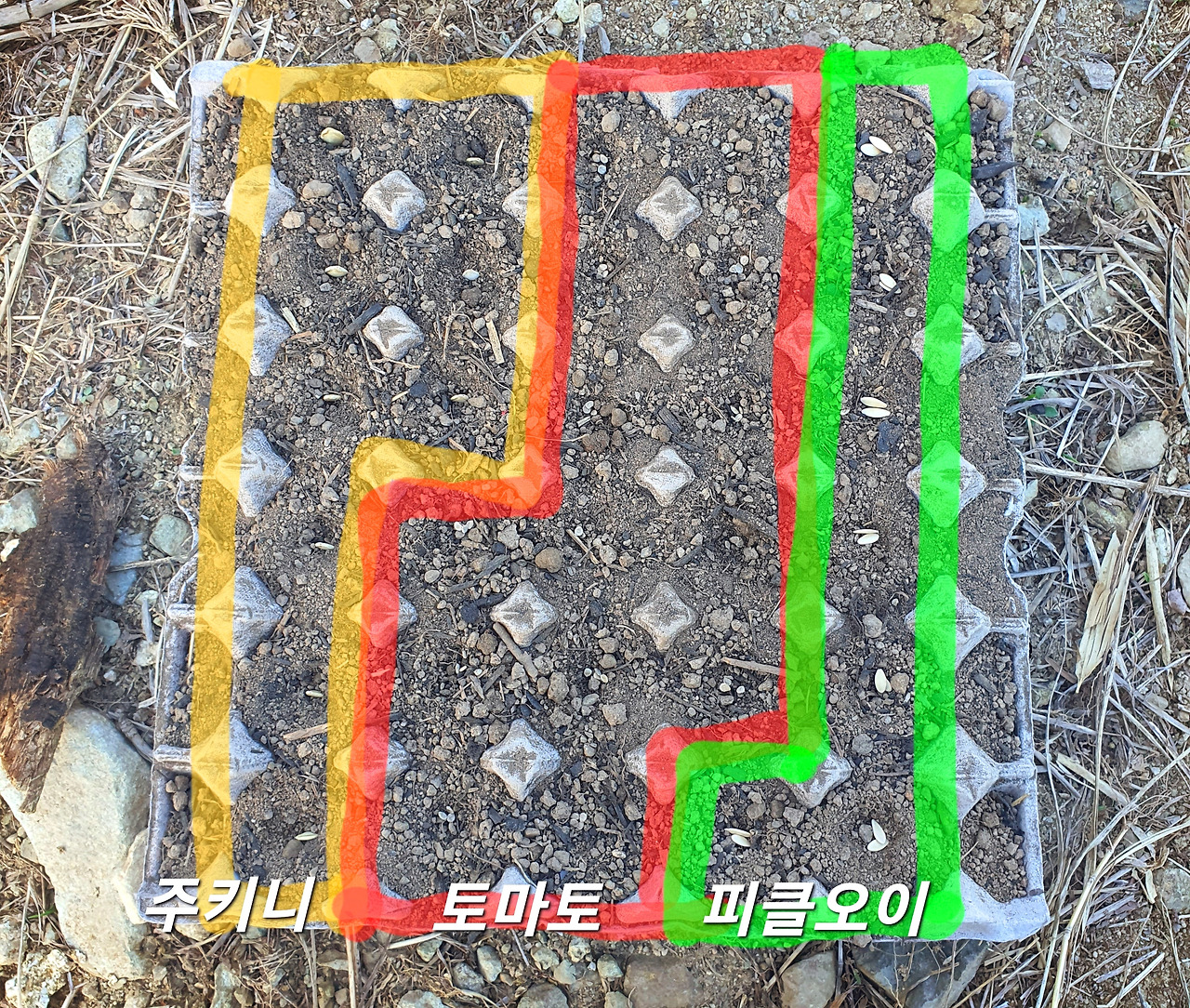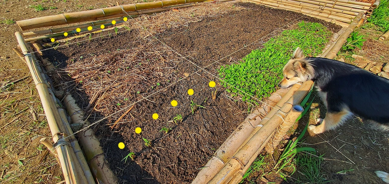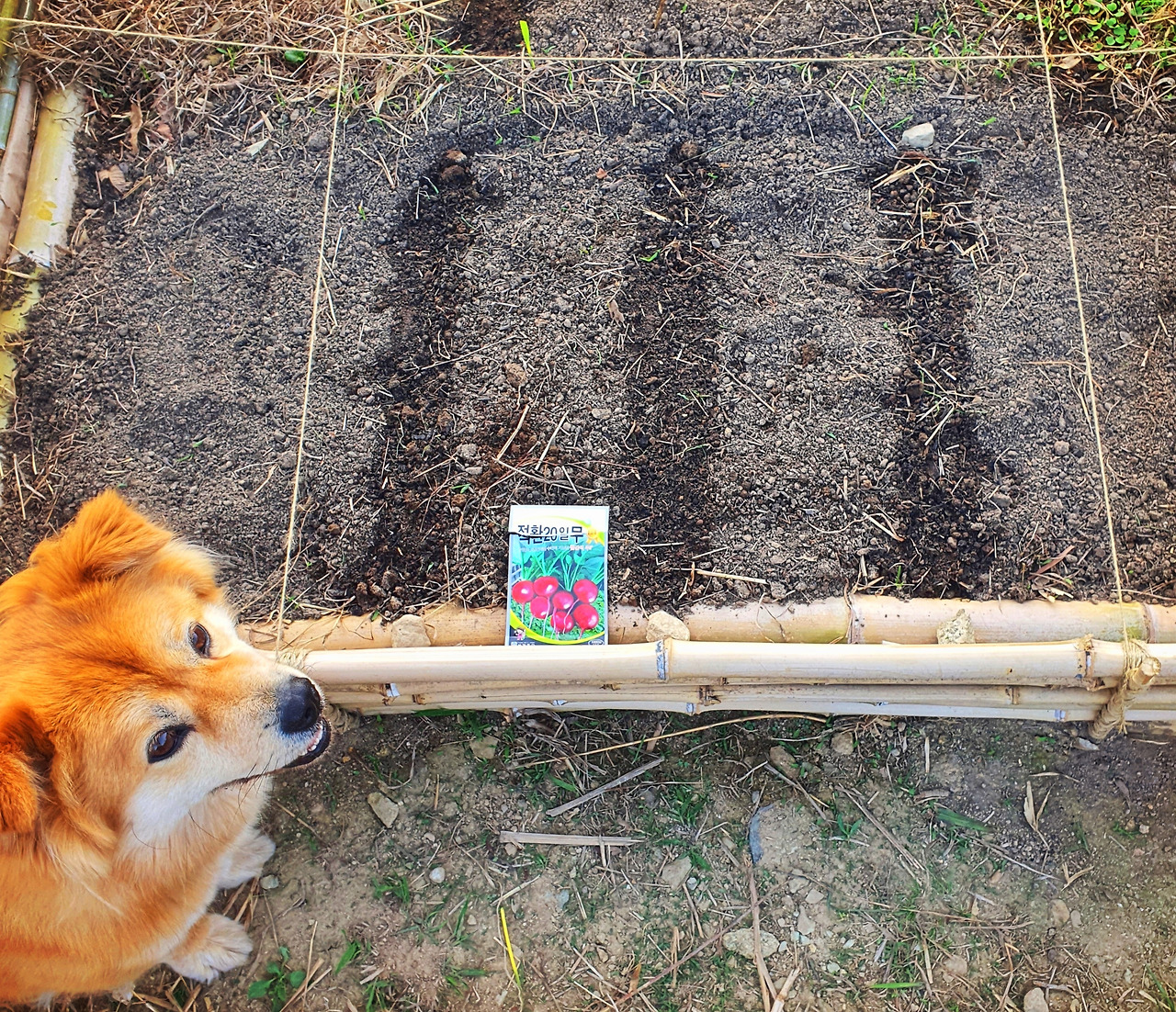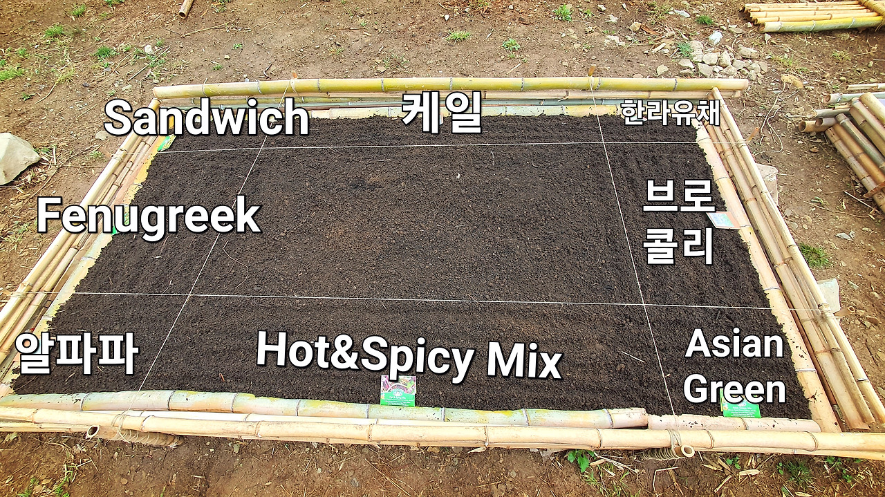 마끈으로 구간을 나누어 씨앗을 뿌려주었지요.