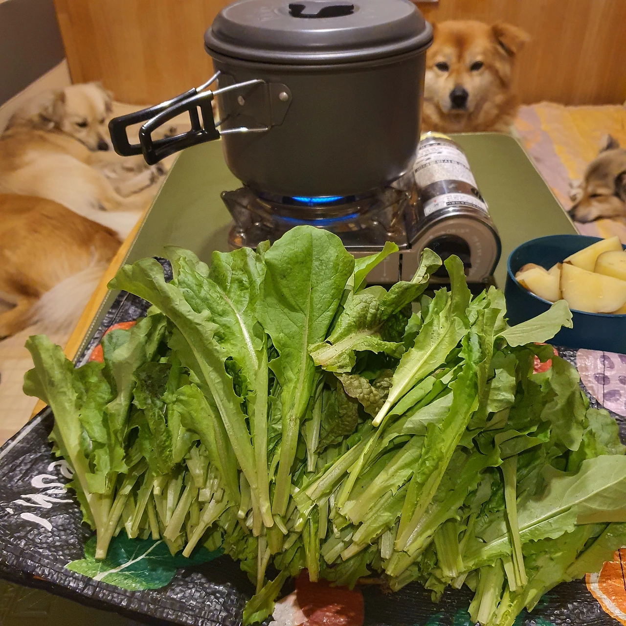 상추밭을 속아냈다며 저녁에 쌈 싸먹으라고 담아주셨어요.