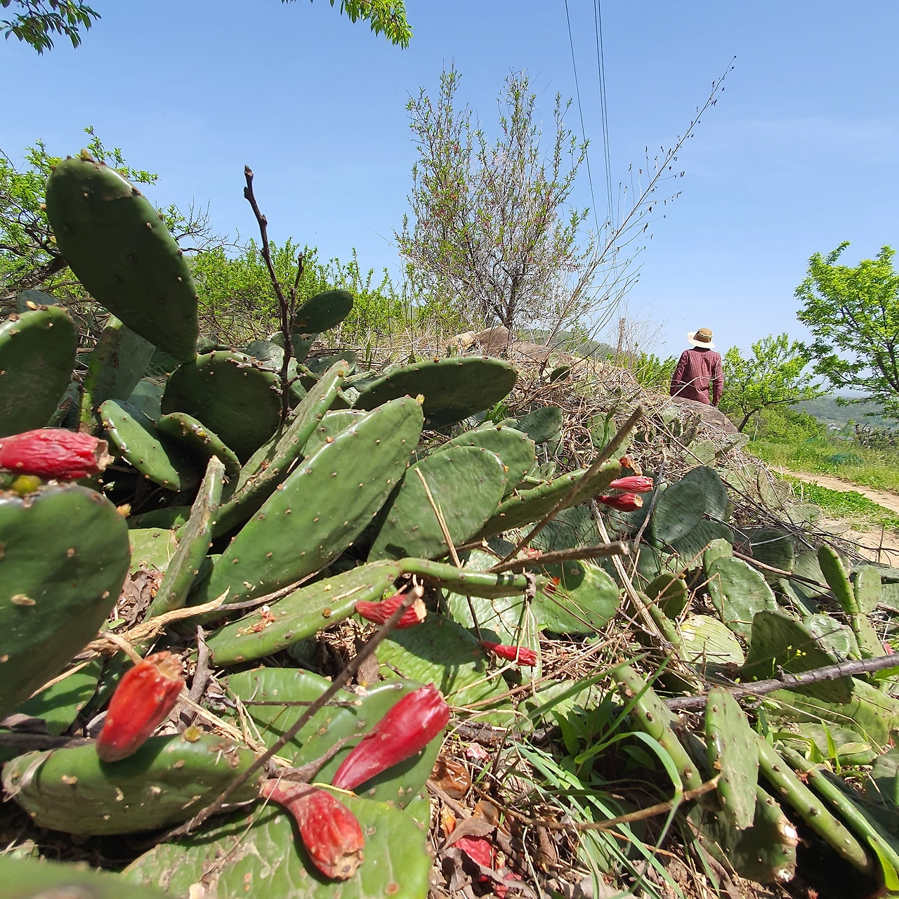 덩쿨에 가려져있어 몰랐는데 백년초가 자라더라구요. 손바닥선인장인데 제주도에서 처음 자세히 봤던거라 백년초라는 이름이 더 익숙합니다. 제주도에서는 손바닥선인장을 백년초라고 부르거든요.